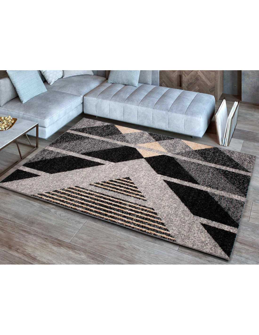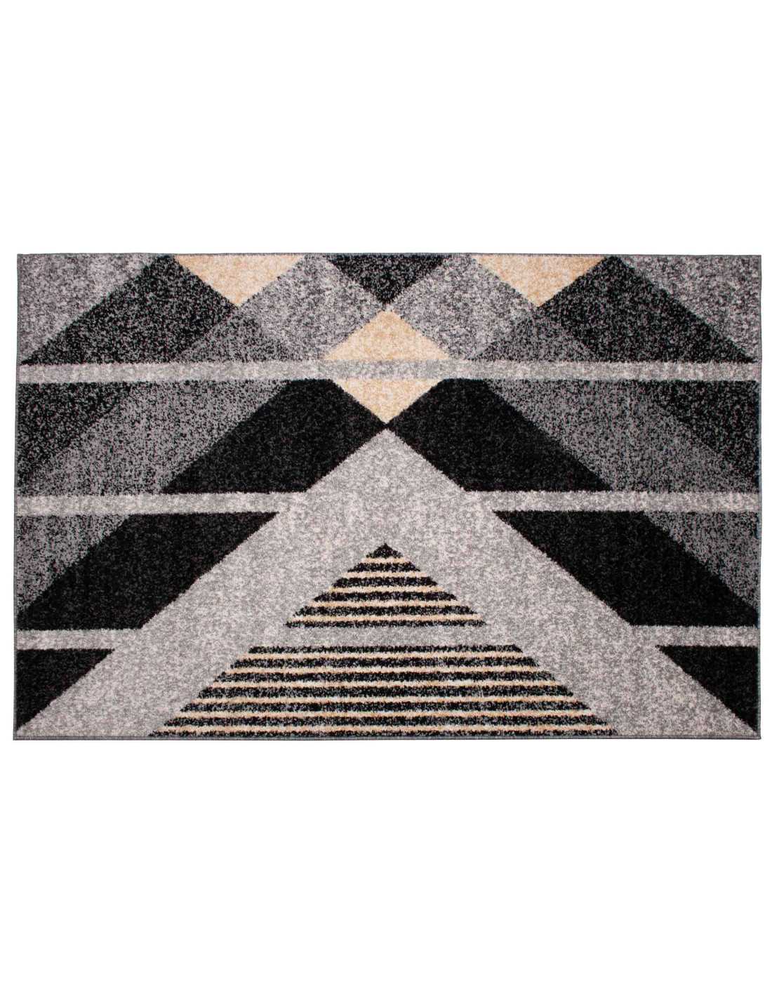 Alfombra de pelo corto muy decorativa con diseño geométrico, en tonos gris y beige para decorar tu hogar. Disponible en varias medidas.