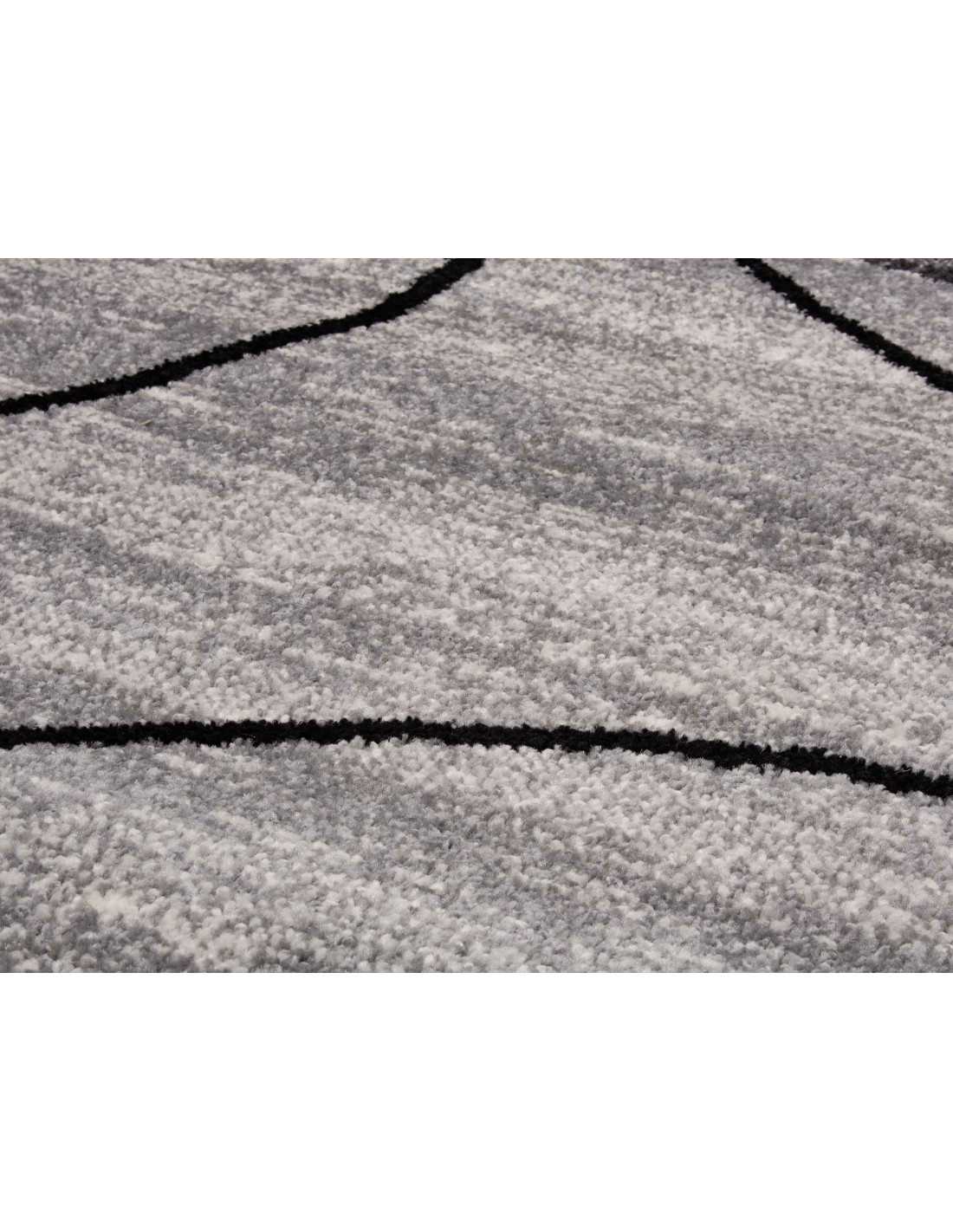 Alfombra de pelo corto muy decorativa con diseño geométrico, en fondo gris ideal para decorar tu hogar. Disponible en varias medidas.
