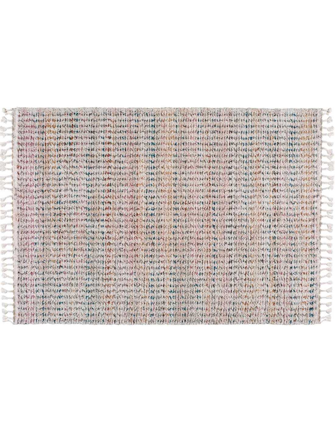 Regina es una alfombra con un diseño moderno con flecos multicolor, que decorará cualquier estancia de tu hogar. Está fabricada en 100 % poliéster y yute en el reverso, y una longitud de pelo de 25 mm. y una densidad de 112.000 puntos por metro cuadrado.