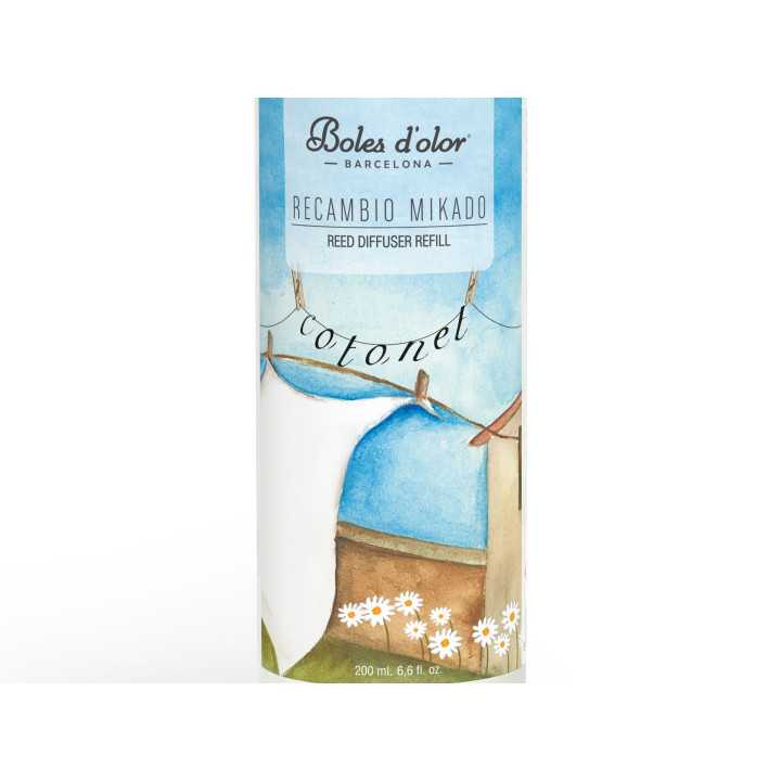Recambio para el mikado Ambients de la fragancia Cotonet. El recambio de Mikado crea un aroma continuo por toda la estancia durante varias semanas.