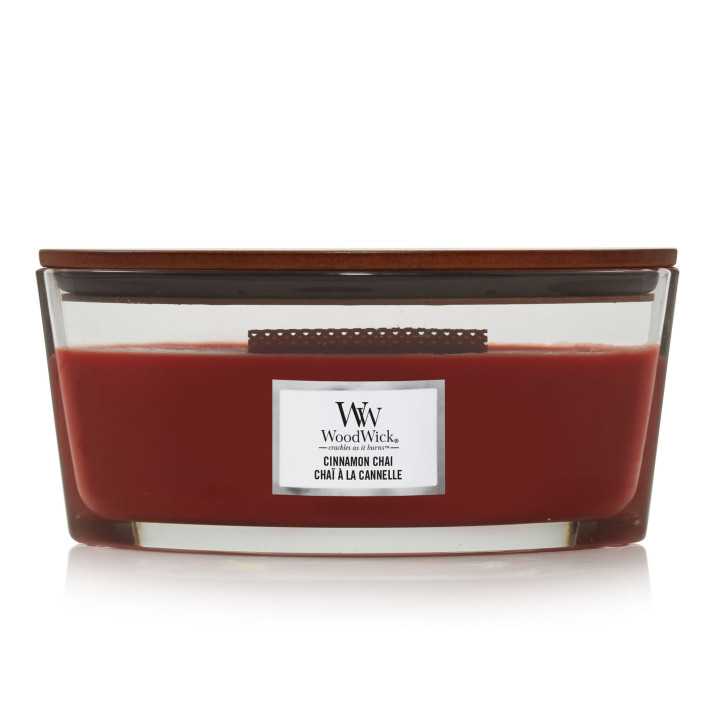 Vela aromática de la marca Woodwick formato Core ellipse de la fragancia Cinnamon Chai. Las velas de Woodwick® complementan tu hogar con un suave crepitar y acogedores aromas.