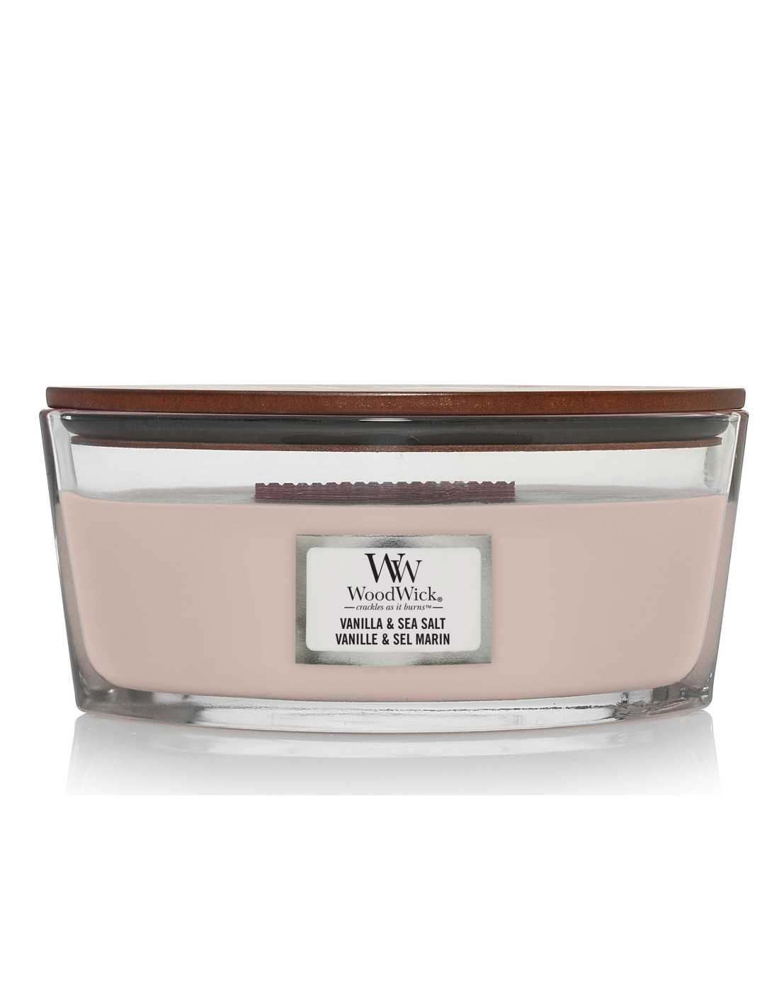 Vela aromática de la marca Woodwick formato Core ellipse de la fragancia Vanilla Sea Salt . Las velas de Woodwick® complementan tu hogar con un suave crepitar y acogedores aromas.