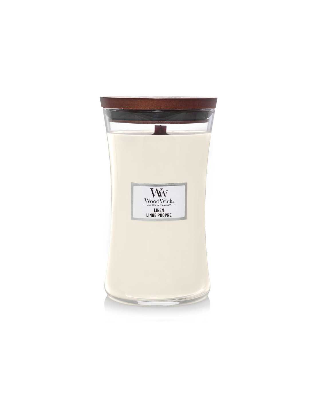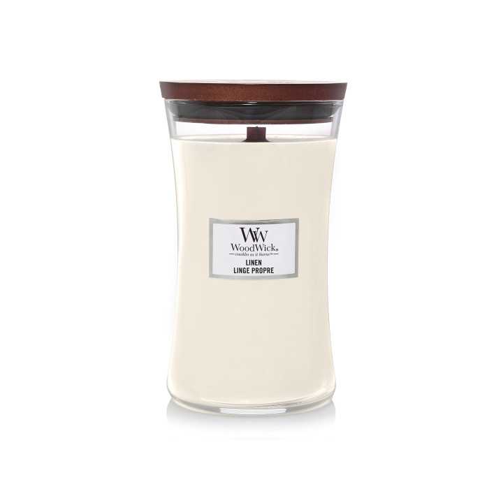Vela aromática de la marca Woodwick formato Core large de la fragancia Linen. Las velas de Woodwick® complementan tu hogar con un suave crepitar y acogedores aromas.