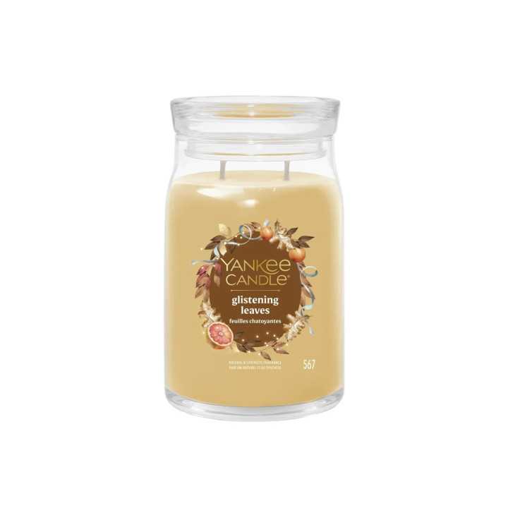 Vela aromática de la marca Yankee Candle formato Large de la fragancia Glistening Leaves. Envuelve tu hogar con las fragancias de las velas aromáticas de Yankke Candle.