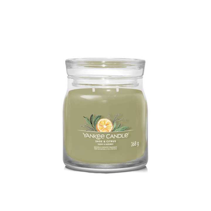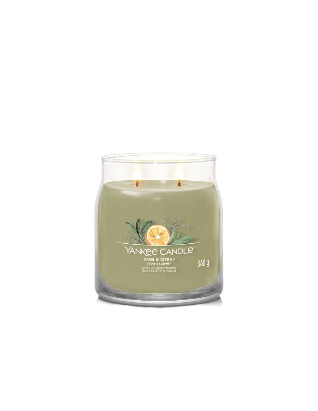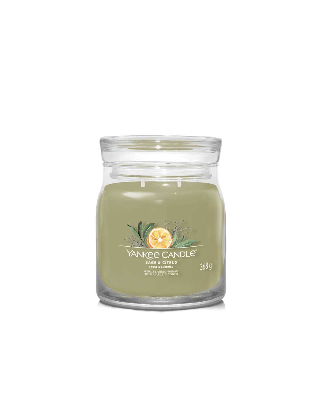 Vela aromática de la marca Yankee Candle formato Medium de la fragancia Sage & Citrus. Envuelve tu hogar con las fragancias de las velas aromáticas de Yankke Candle.