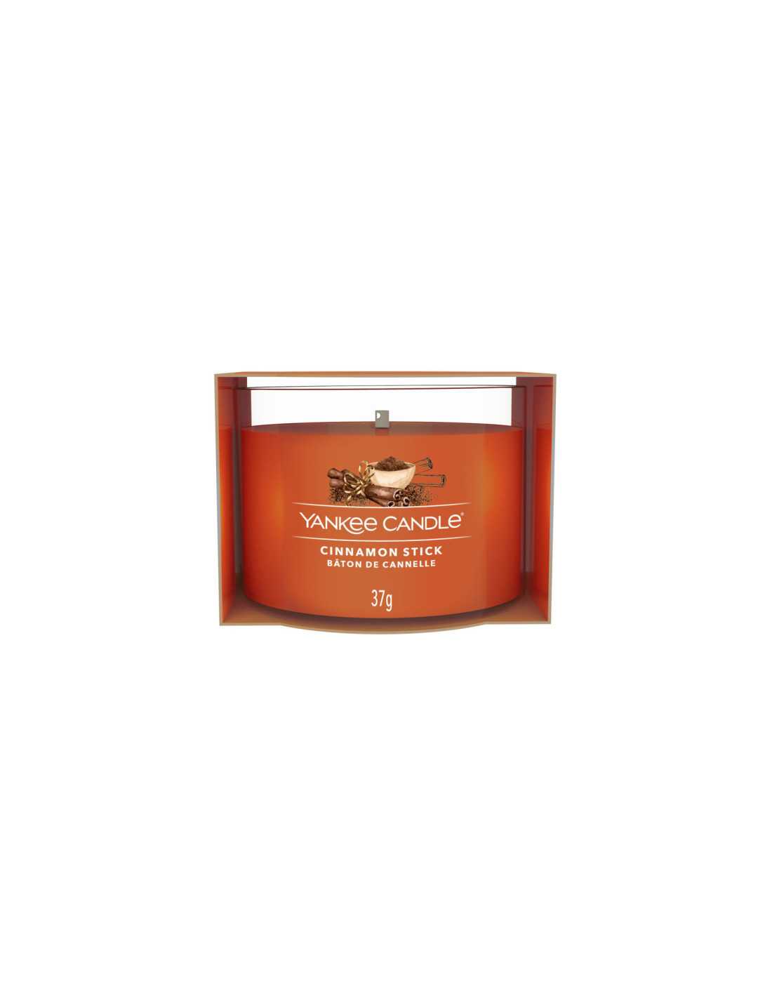 Vela aromática de la marca Yankee Candle formato mini de la fragancia Cinnamon Stick. Envuelve tu hogar con las fragancias de las velas aromáticas de Yankke Candle.