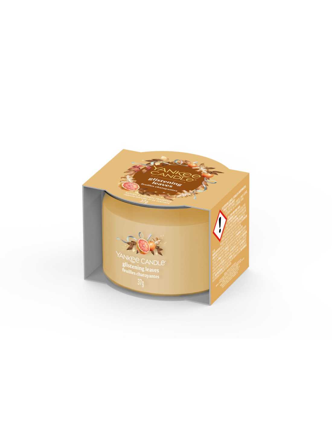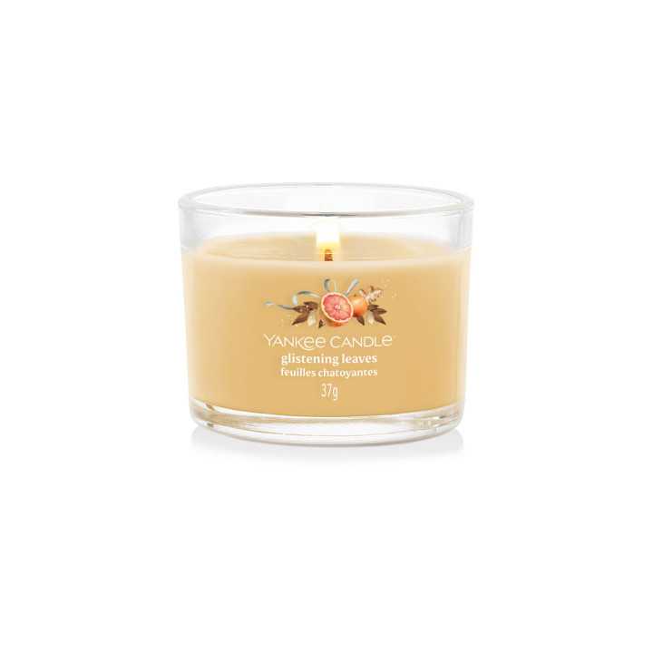 Vela aromática de la marca Yankee Candle formato mini de la fragancia Glistening Leaves. Envuelve tu hogar con las fragancias de las velas aromáticas de Yankke Candle.