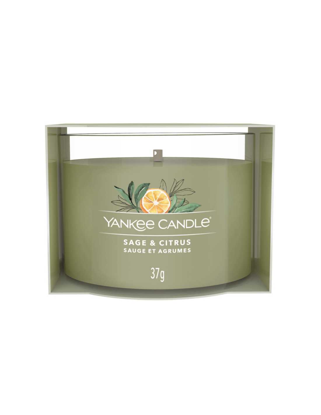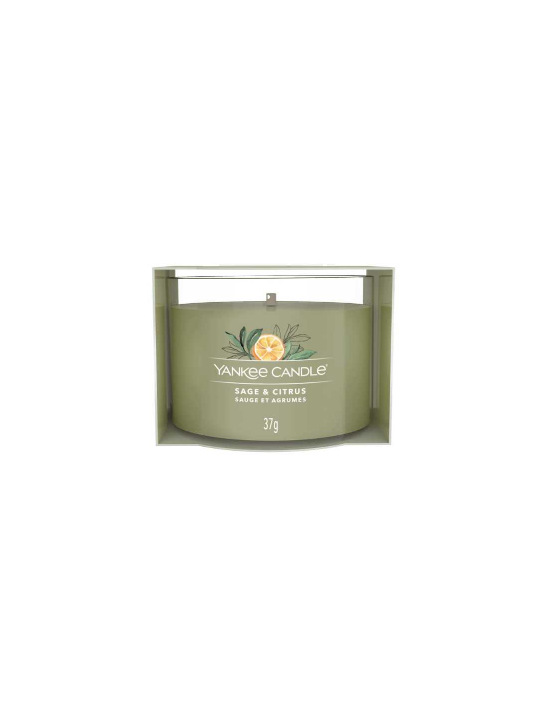 Vela aromática de la marca Yankee Candle formato mini de la fragancia Sage & Citrus. Envuelve tu hogar con las fragancias de las velas aromáticas de Yankke Candle.
