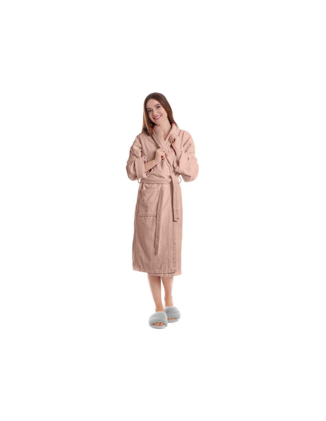 Albornoz de algodón de la mejor calidad en color nude. Gran suavidad y absorción para tu baño y confort.