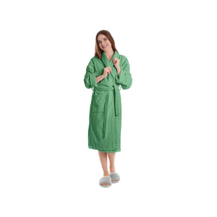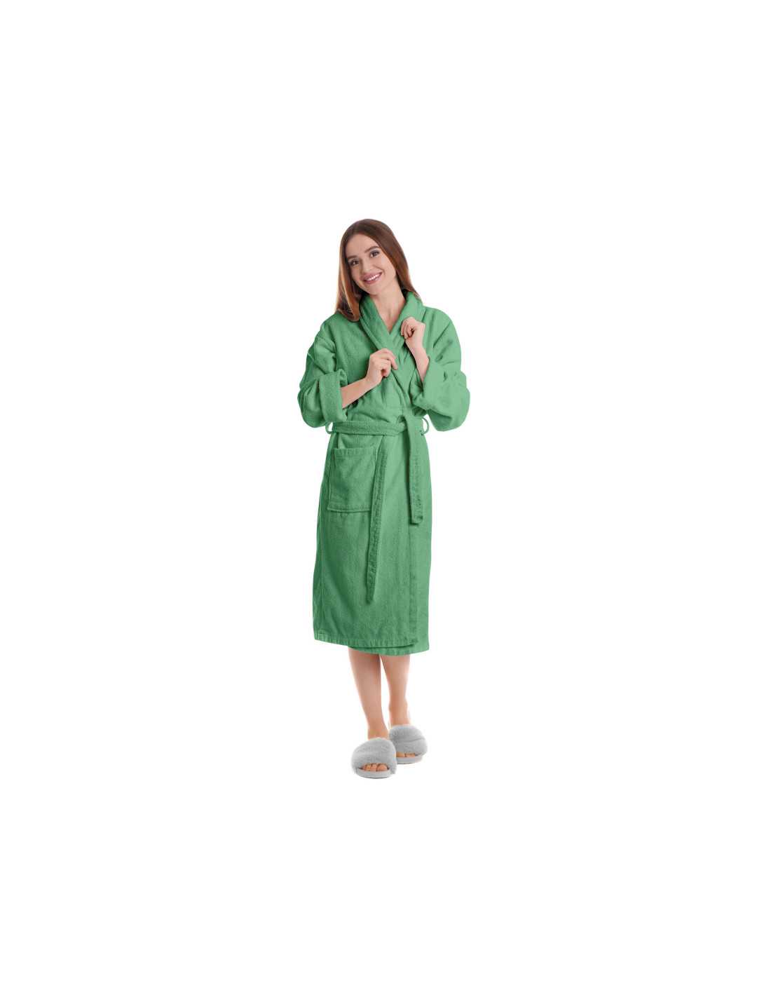 Albornoz de algodón de la mejor calidad en color verde. Gran suavidad y absorción para tu baño y confort.