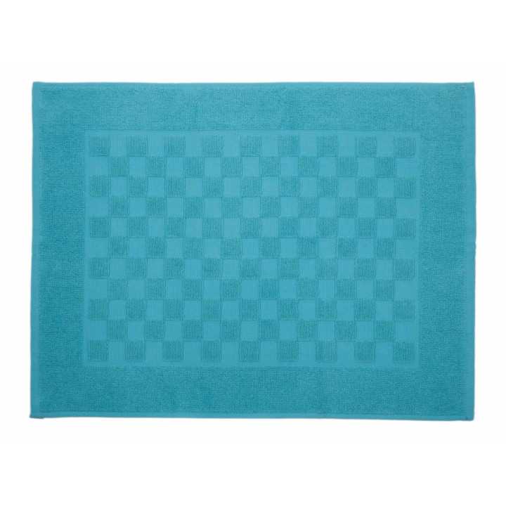 Alfombra baño de la marca Ajuar en color Aguamarina y confeccionada en 100% algodón peinado y gramaje de 750 gramos.