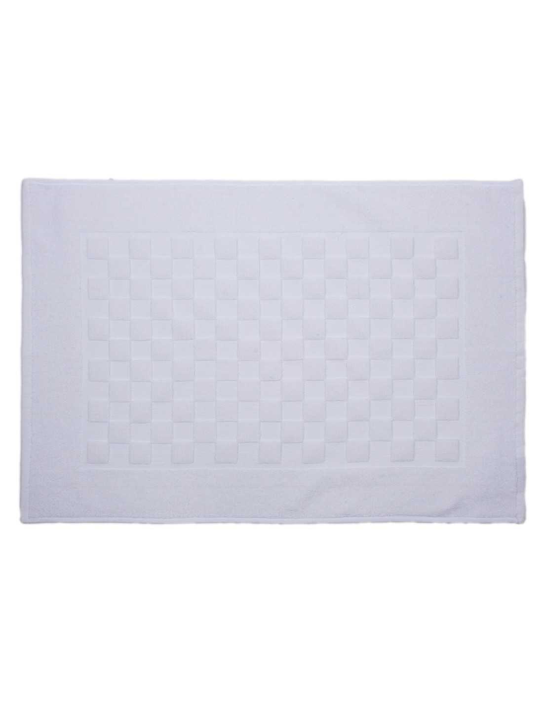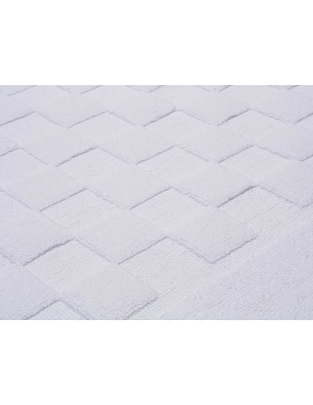 Alfombra baño Ajuar en color blanco confeccionada en 100% algodón peinado y gramaje de 750 gramos. Tejido esponjoso y suave de gran absorción.