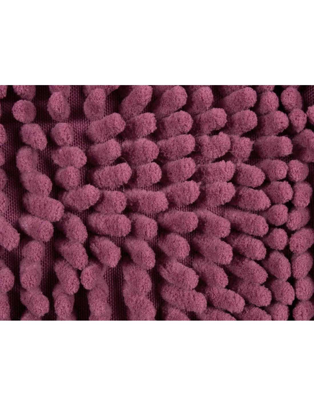La alfombra de baño Vanesa berenjena se presenta con capa antideslizante, es muy agradable al tacto, muy absorbente y de secado rápido.