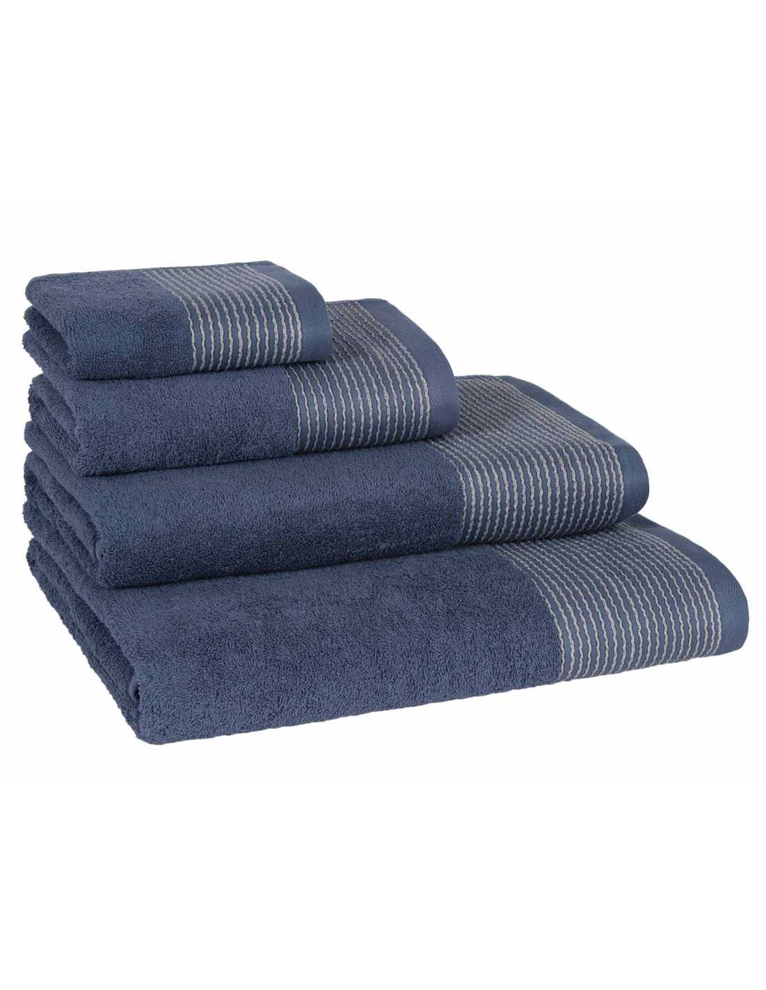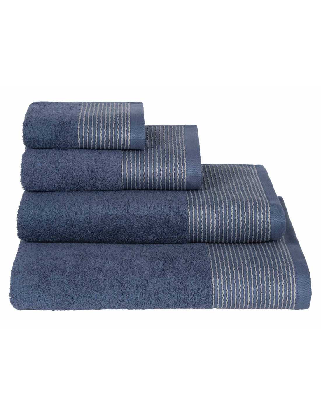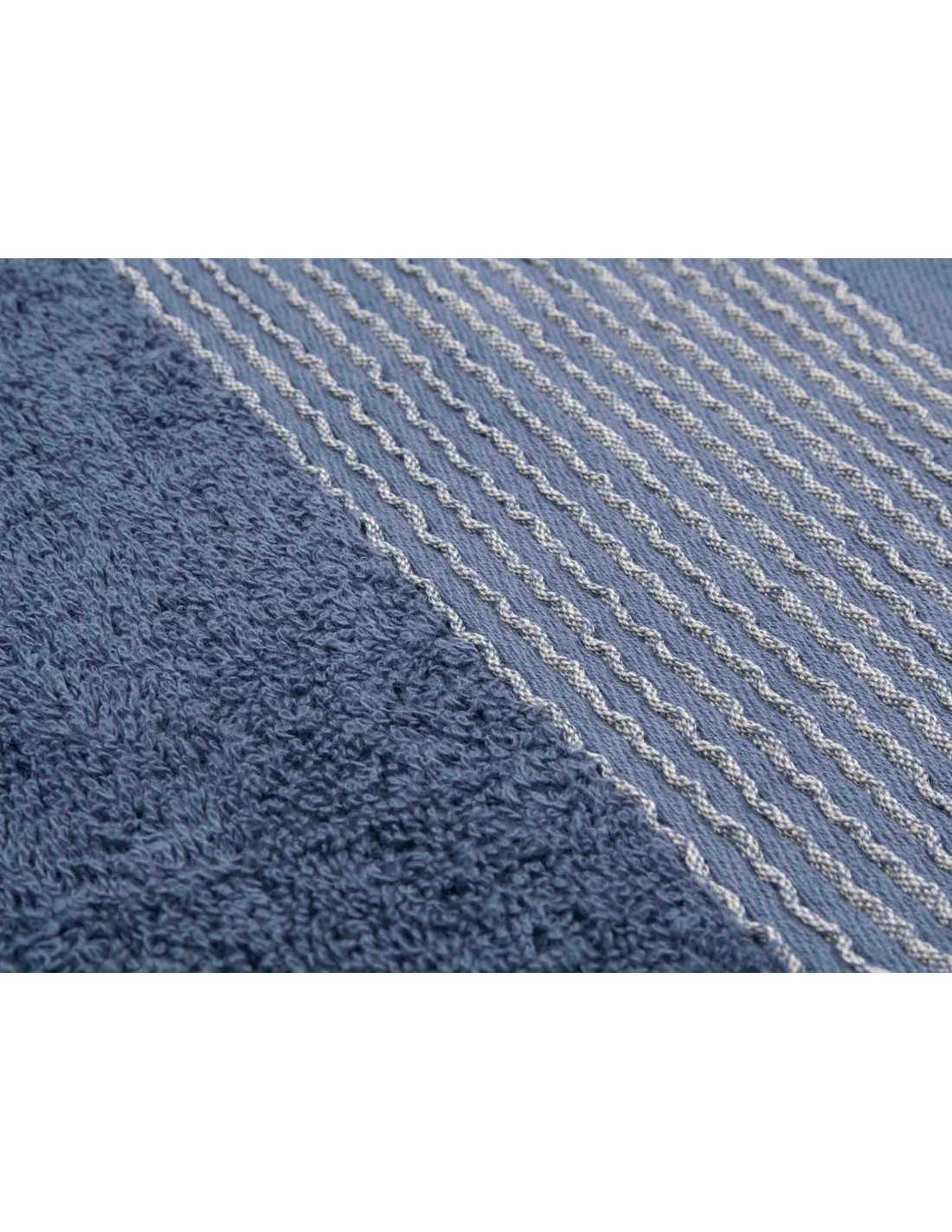 Toalla rizo de 500 g/m2 con preciosa cenefa con líneas onduladas y color azul, confeccionada en rizo de gran calidad de algodón ¡Lo mejor para el baño!