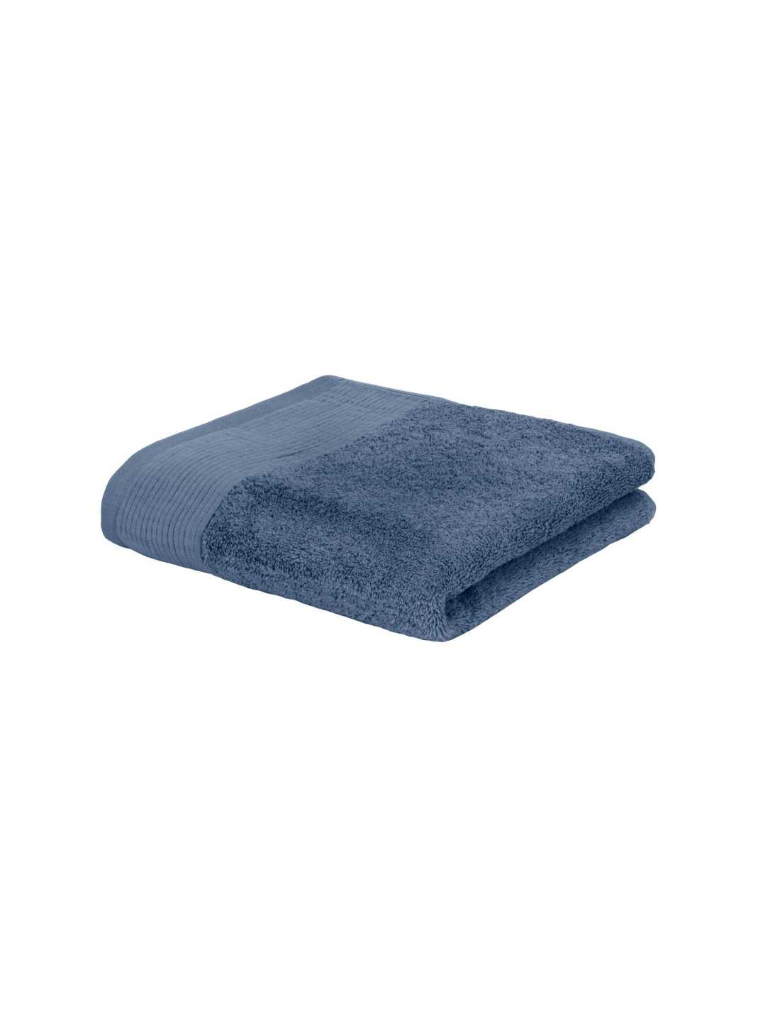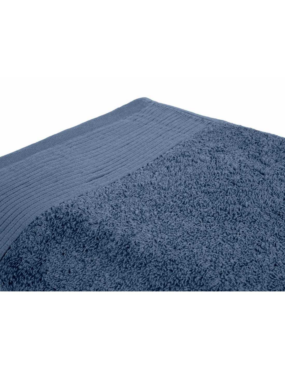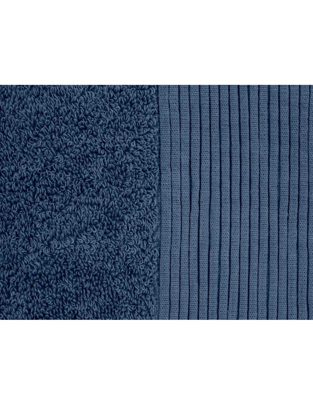 Toalla rizo de 500 g/m2 con elegante cenefa haciendo rayas en diferentes tamaños y color azul, confeccionada en rizo de gran calidad de algodón ¡Lo mejor para el baño!