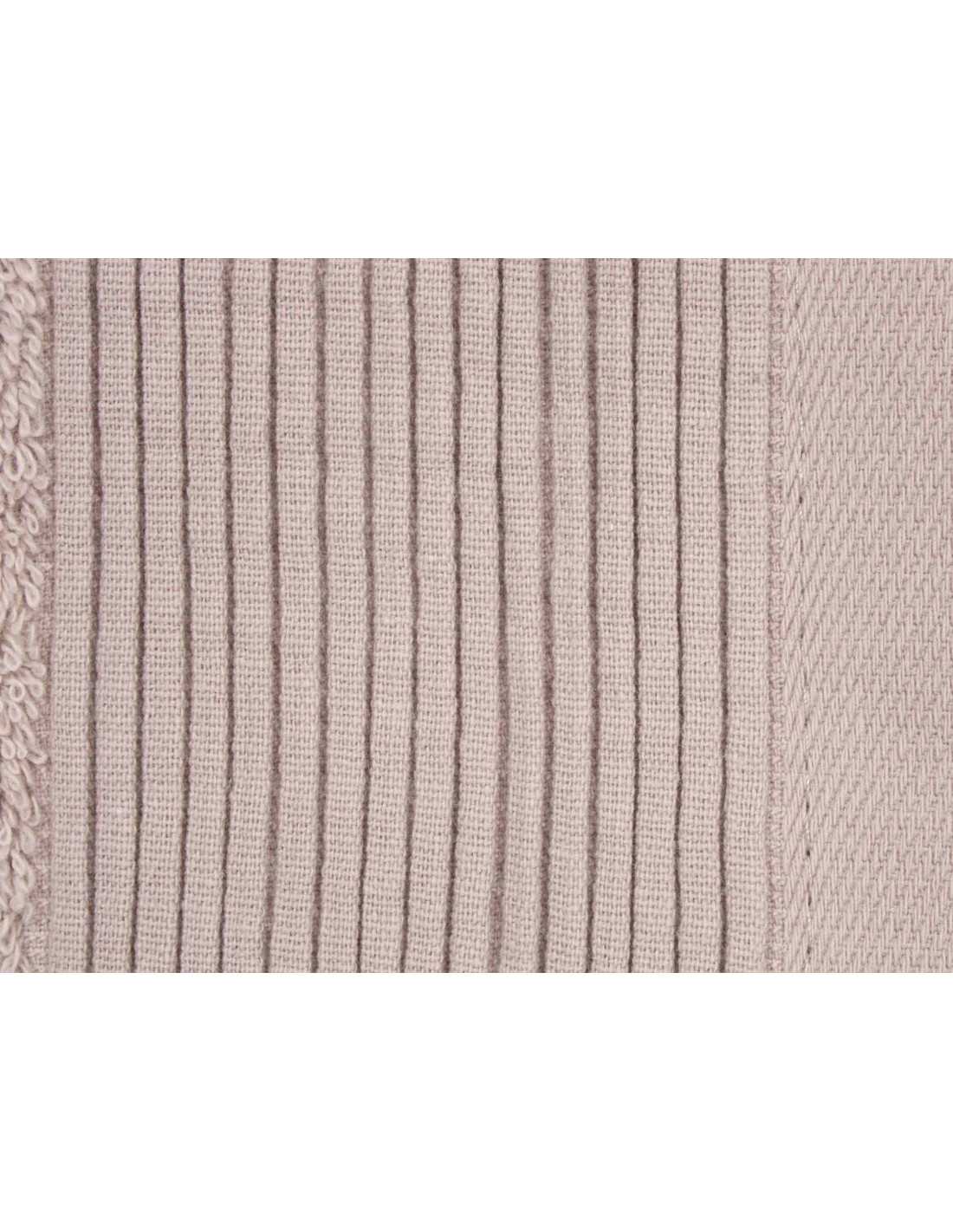 Toalla rizo de 500 g/m2 con elegante cenefa haciendo rayas en diferentes tamaños y color beige, confeccionada en rizo de gran calidad de algodón ¡Lo mejor para el baño!