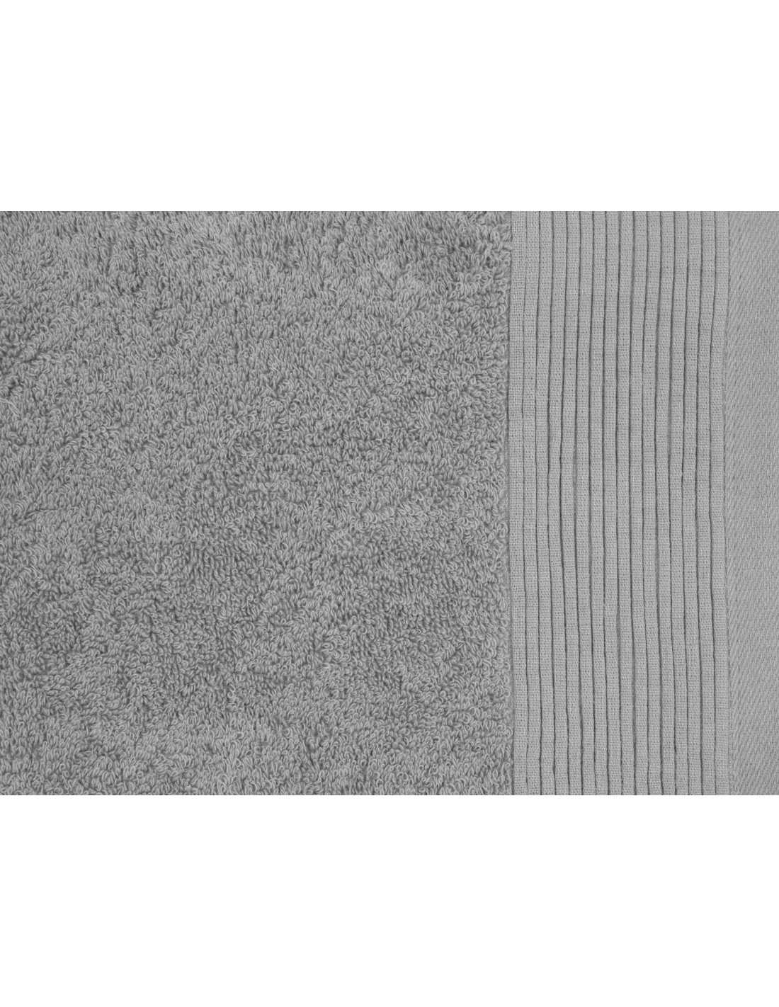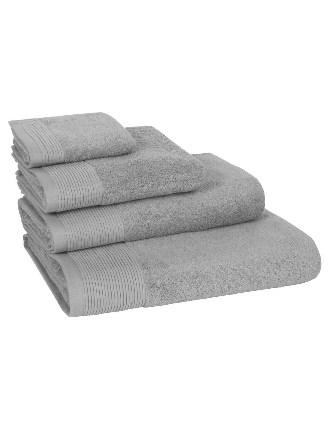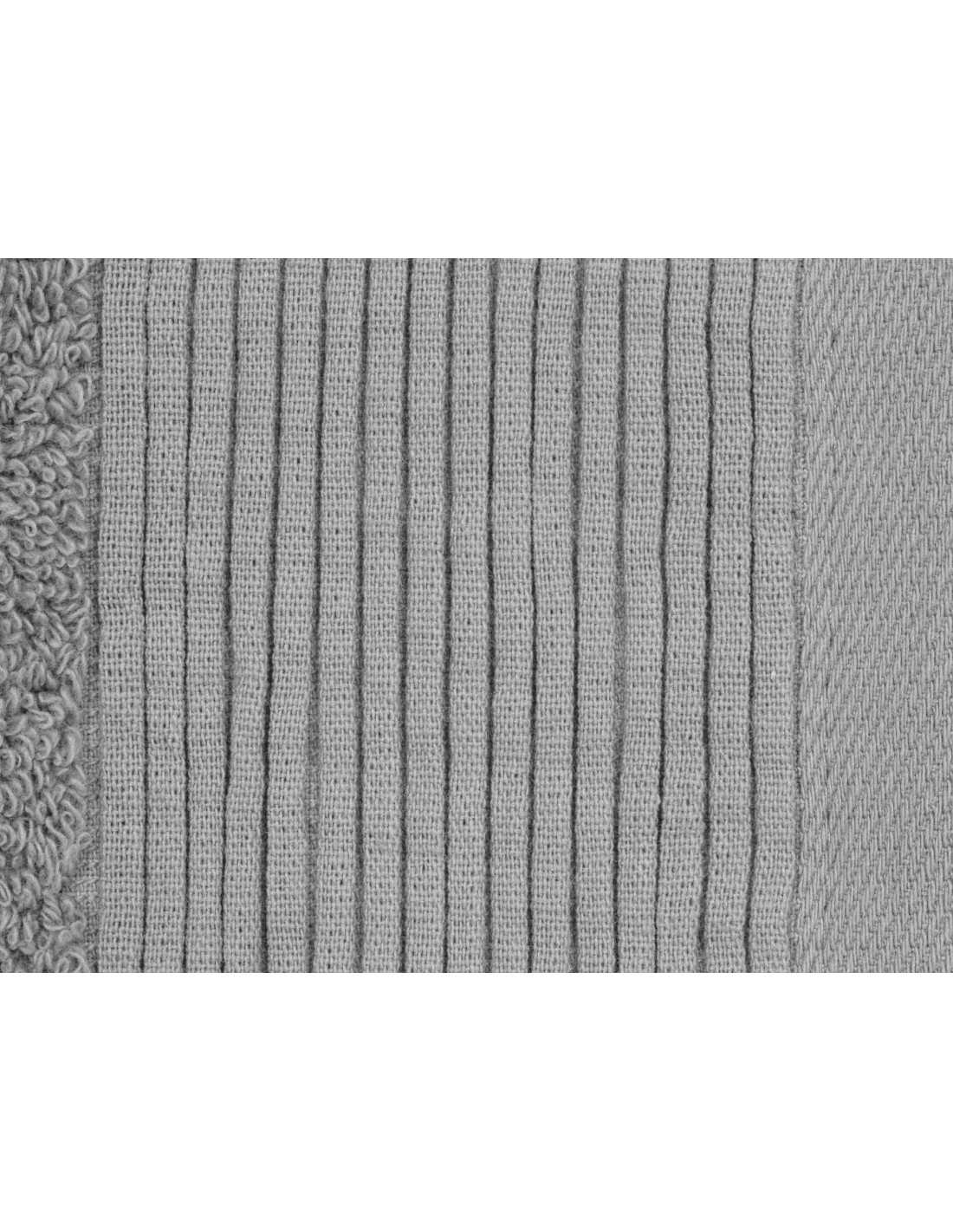 Toalla rizo de 500 g/m2 con elegante cenefa haciendo rayas en diferentes tamaños y color gris, confeccionada en rizo de gran calidad de algodón ¡Lo mejor para el baño!