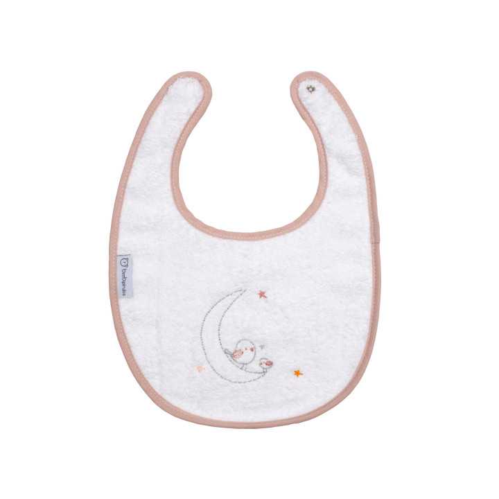 Te presentamos este divertido babero con dos diseños diferetes. Están diseñados con un gracioso bordado y una cenefa lisa en color rosa, confeccionados en 100% algodón, impermeable y con sujeción de corchete o con goma dependiendo del tamaño del babero. Ideal para todas las comidas evitando manchas en la ropa.