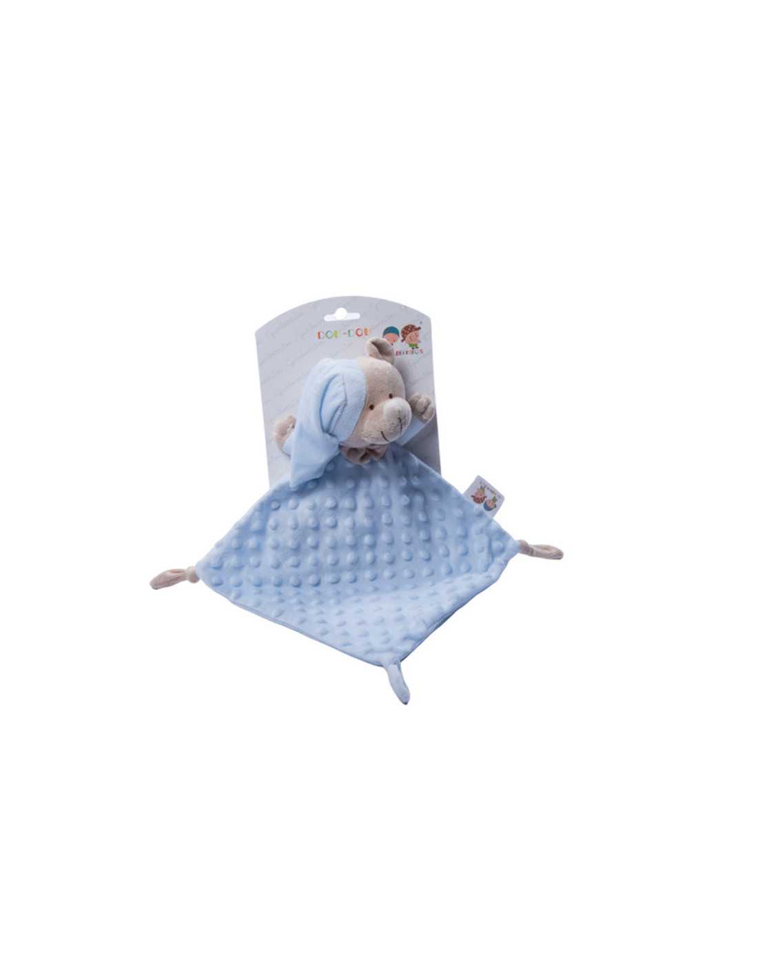 Dou dou con forma de osito y que viste un gorro de dormir y diseñado con topitos que resaltan en la suave tela. Este dou dou se volverá un amigo inseparable para el bebé. Le proporcionará entretenimiento y tranquilidad a lo largo del día y además, le ayudará a que concilie el sueño con su forma plana, su tacto aterciopelado y sensación de calor. Es ideal desde el nacimiento.