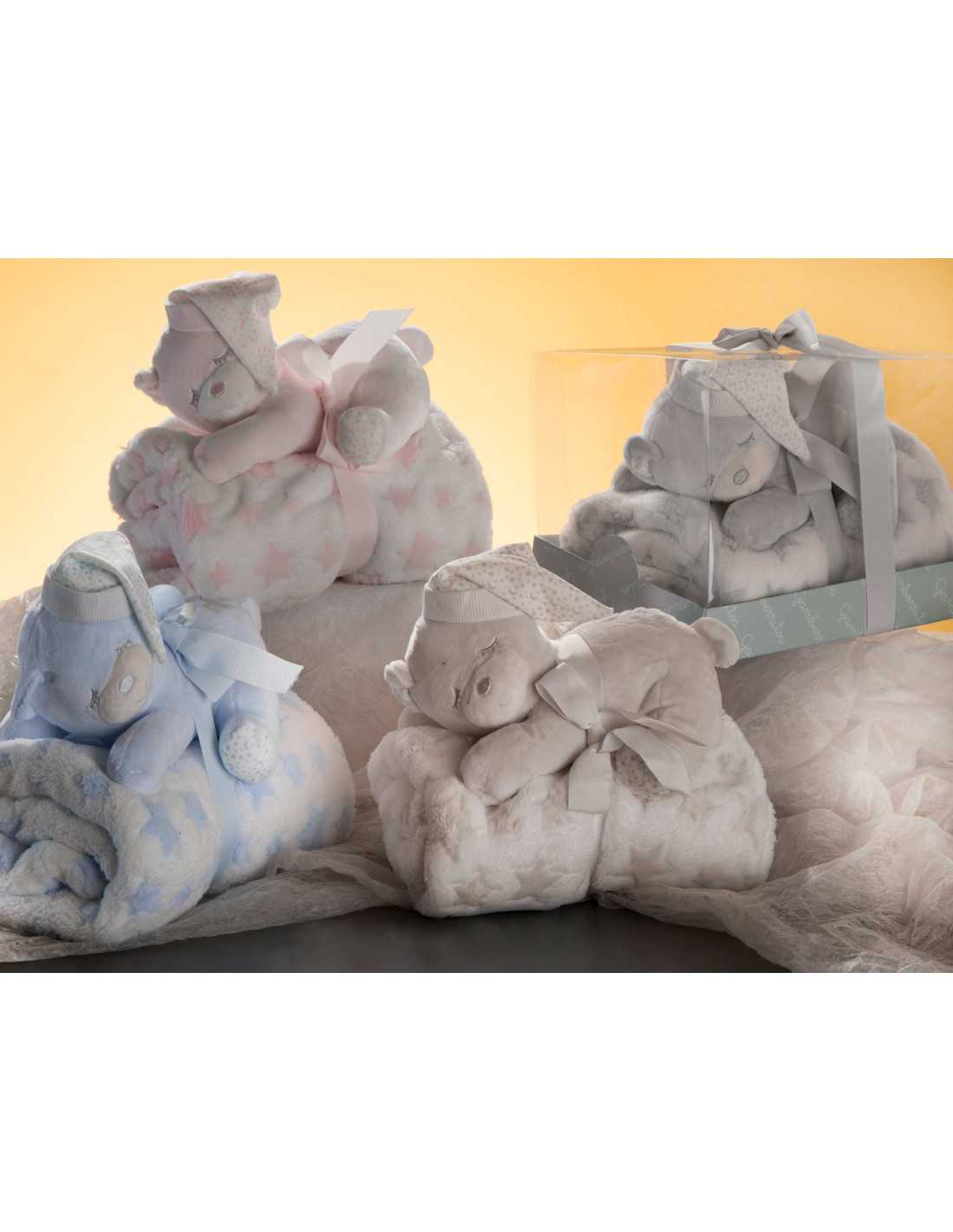 Manta con divertido estampado para abrigar al bebé y peluche para que juegue a un precio fantástico. ¡Un regalo perfecto!