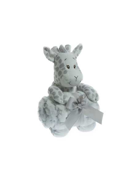 Pack de mantita muy suave y divertido muñeco con forma de jirafa en colo gris, para abrigar y entretener a tu bebé en tu hogar o de paseo.