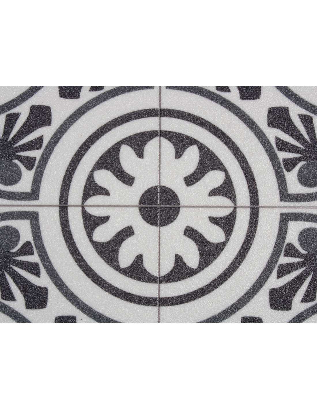 Allium es una alfombra de cocina con decorativo y original diseño imitación de baldosa hidráulica en tono gris. Una alfombra que te será muy útil para evitar las manchas de grasa en en suelo al cocinar.