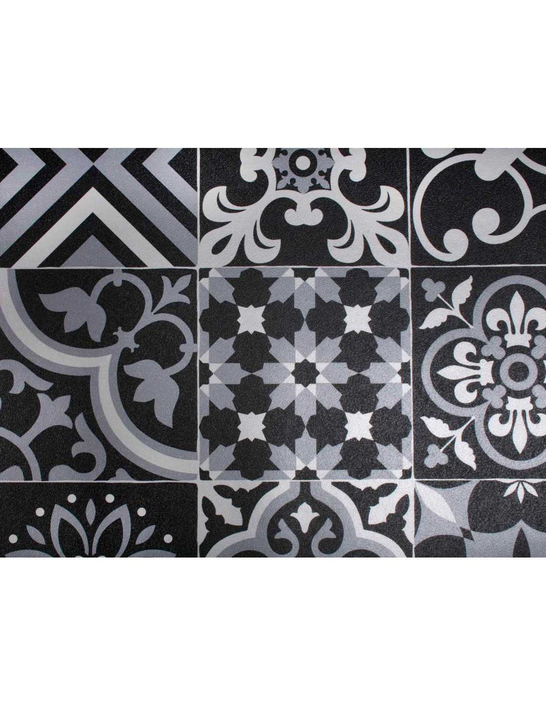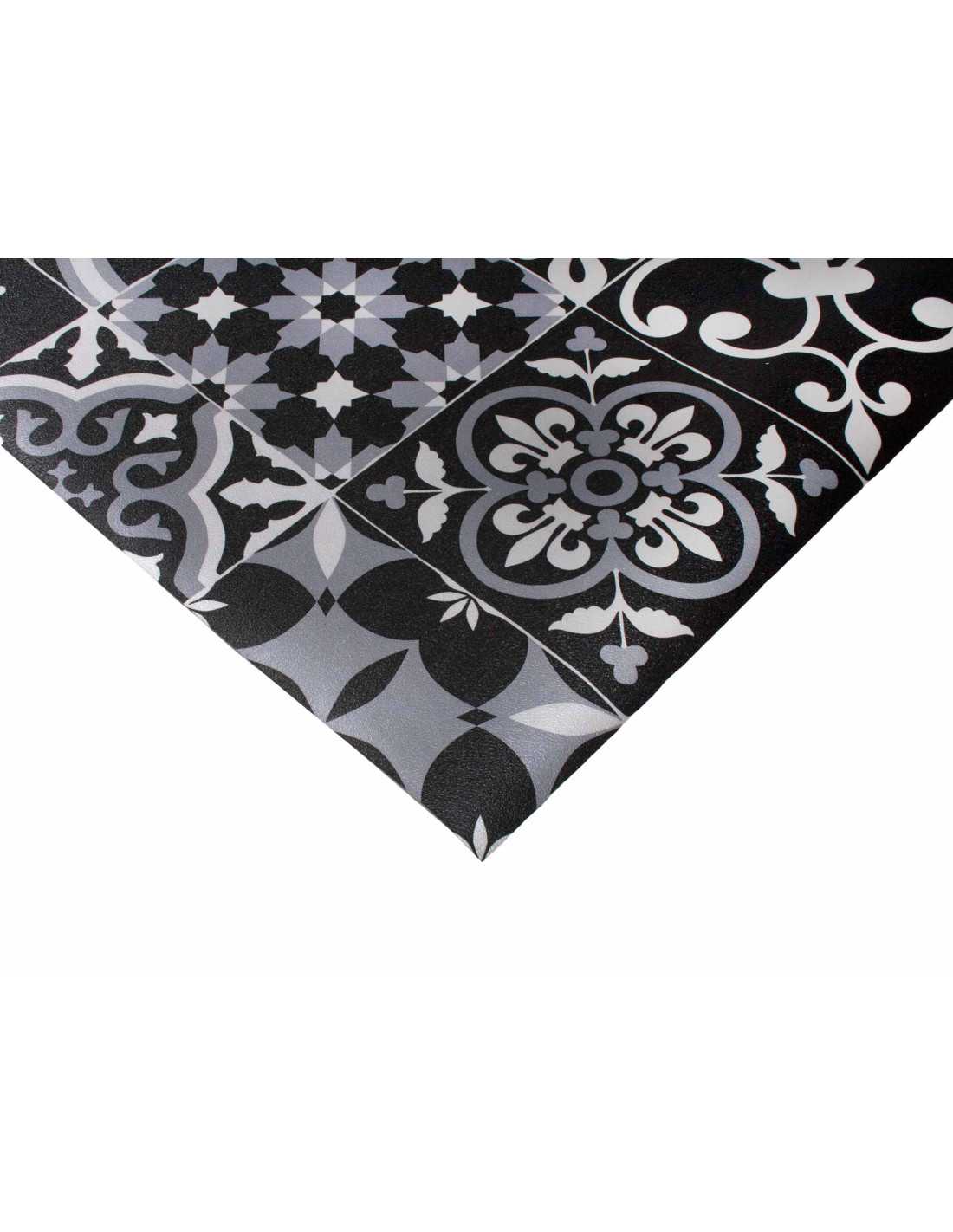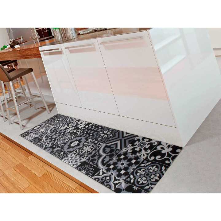 Alfombra de cocina de tipo vinílico, con base de fibras y una capa antirralladura.