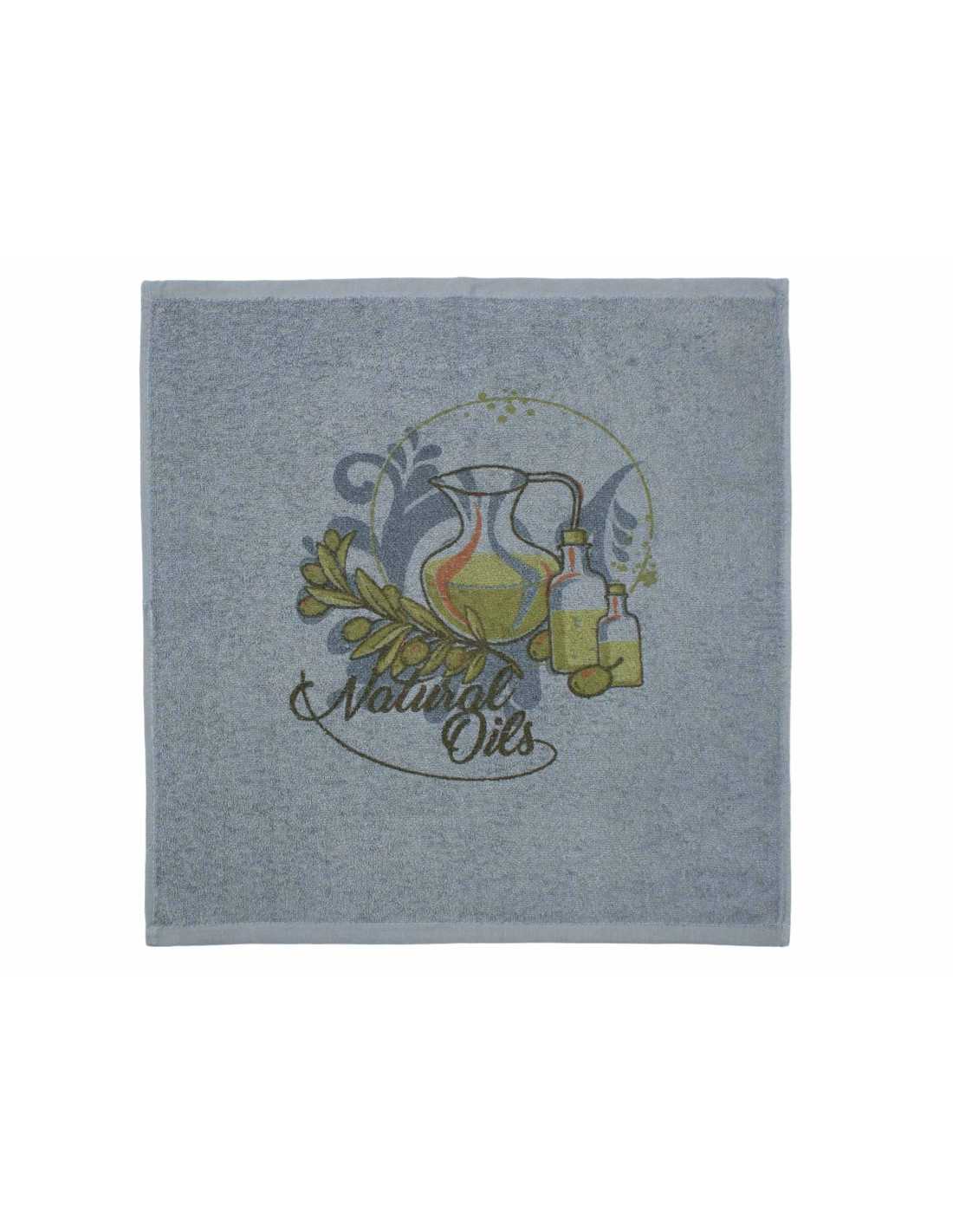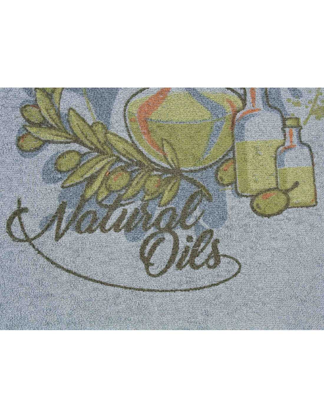 Paño de cocina de 100% algodón, con estampado muy alegre y colorido con aceite y olivas. Especialmente indicado para secar, limpiar y decorar tu cocina.
