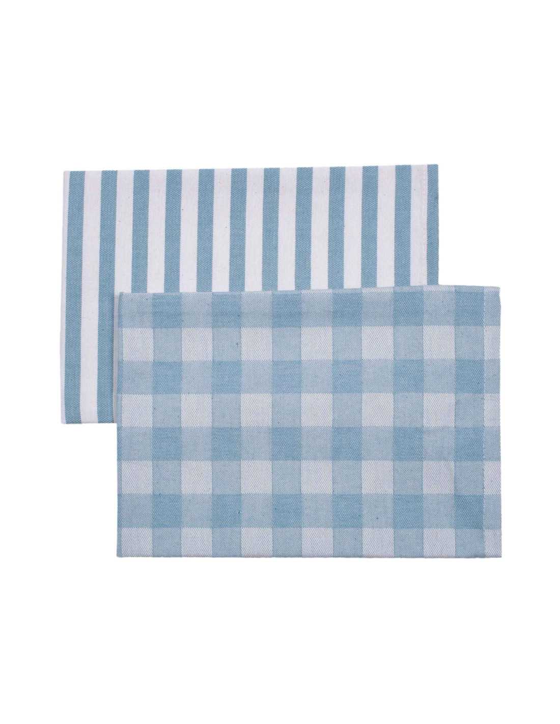 2 Paños de cocina uno con estampado de cuadros y otro de rayas de 100% algodón. Especialmente indicado para secar, limpiar y decorar tu cocina.