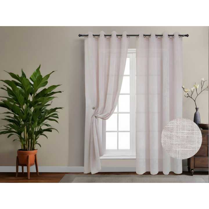 Visillo confeccionado liso en color rosa con ollados listo para colocar en la estancia de tu hogar que tú prefieras.
