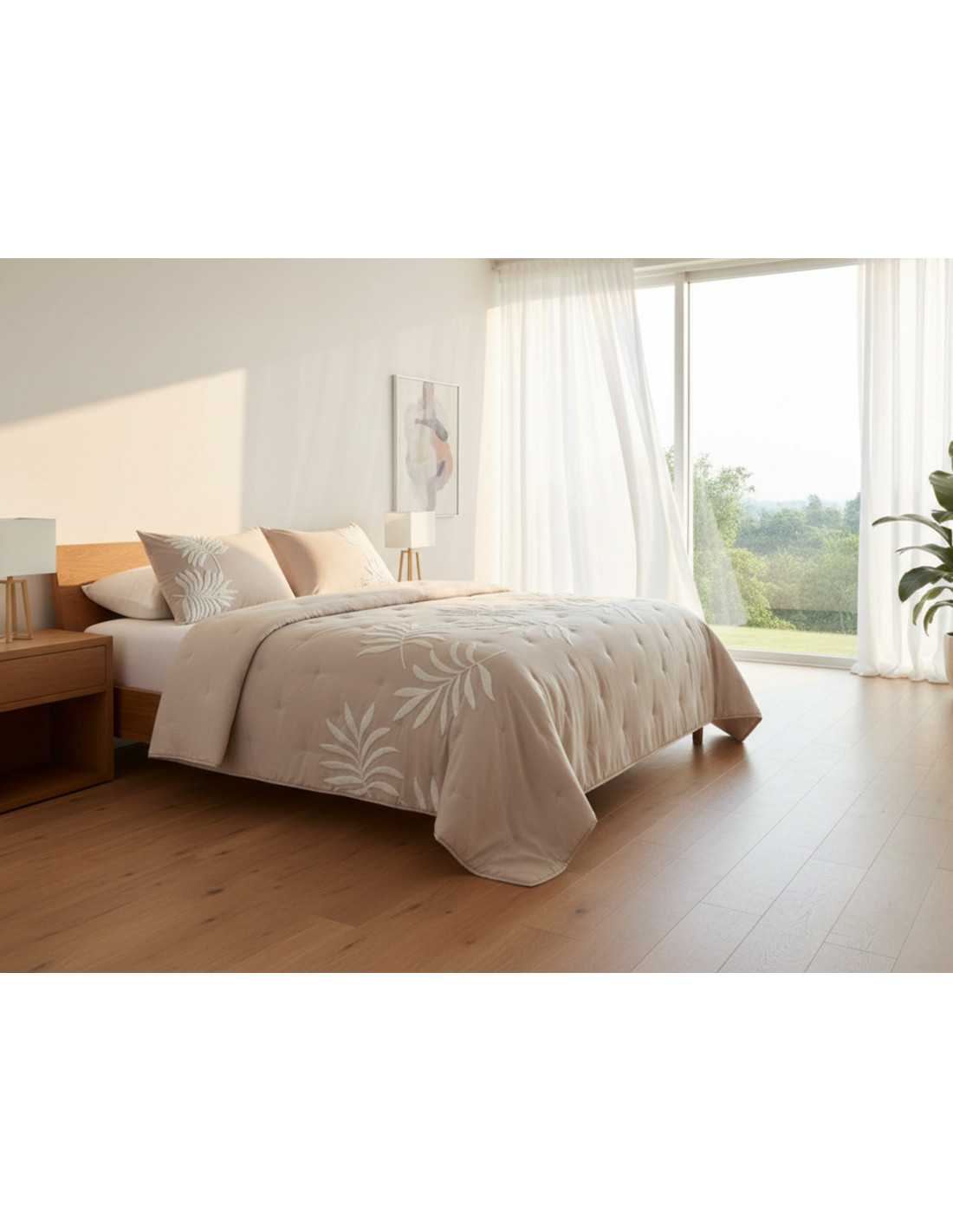 Colcha bouti de entretiempo y verano con relleno ligero, y bordado decorativo de ramas con tacto suave para un perfecto descanso.