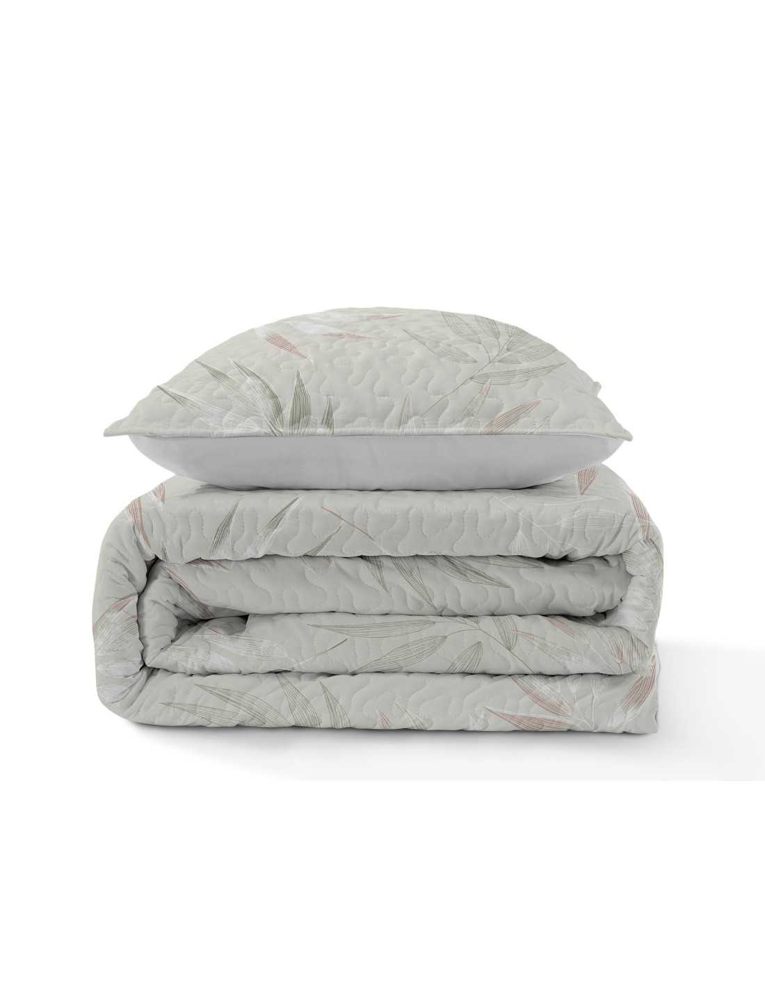 Alvite es una colcha con diseño de hojas y pespuntes de hilo. Un bouti de gran elegancia y luminosidad para disfrutar de la llegada del buen tiempo. Confeccionada con un ligero relleno.