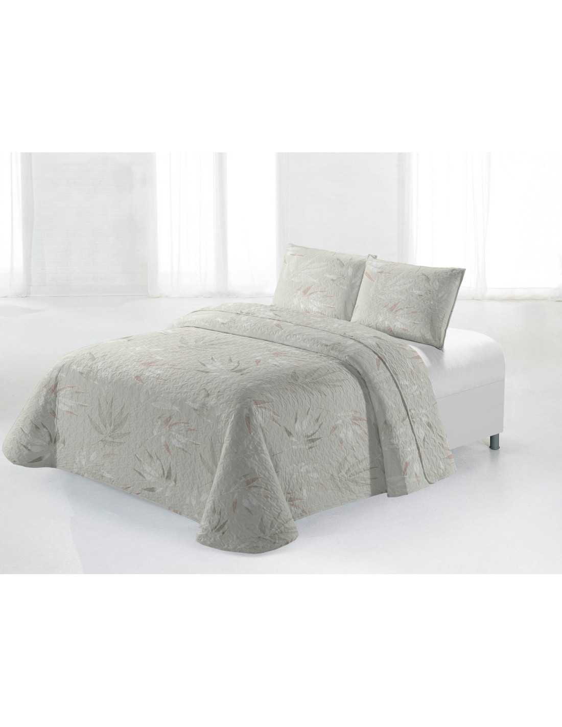 Colcha bouti de primavera y verano con diseño de hojas en tonos marrones y beig. Una colcha muy elegante y decorativa ideal para dar luminosidad a tu dormitorio.