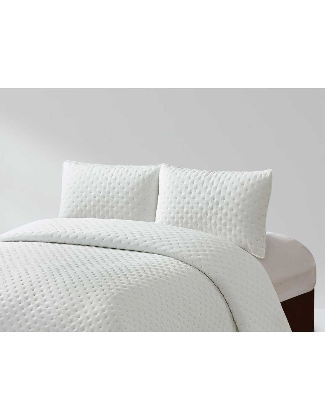 Banel es un bouti de color liso con un patrón de pequeñas cruces termoselladas. Una colcha muy sencilla y elegante.