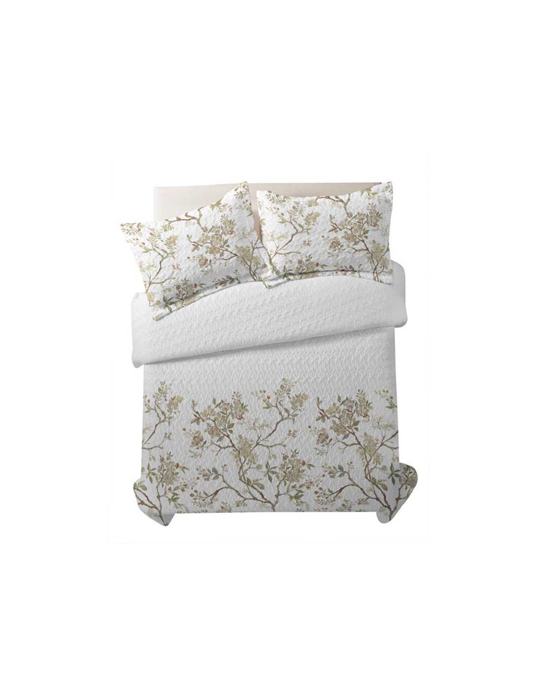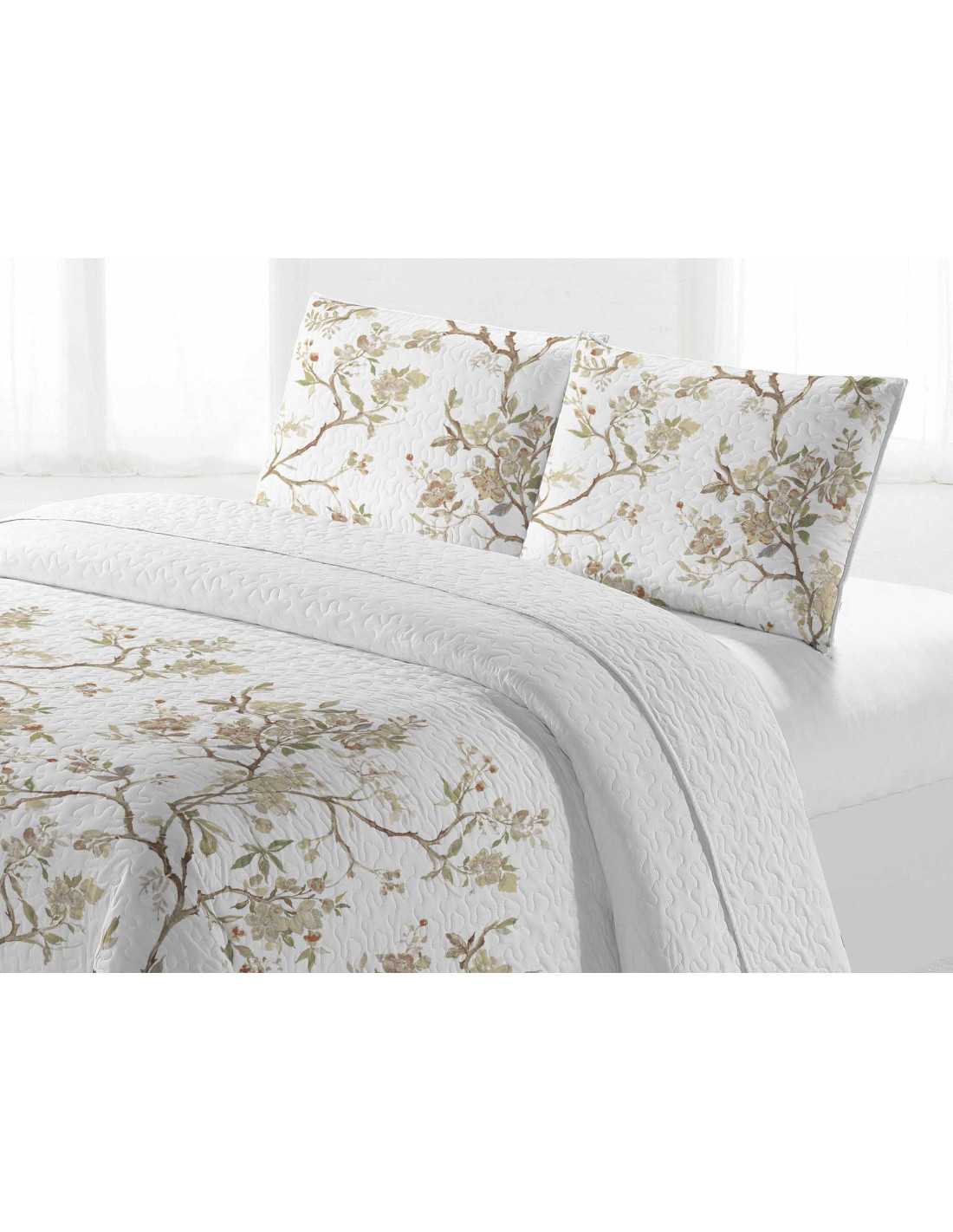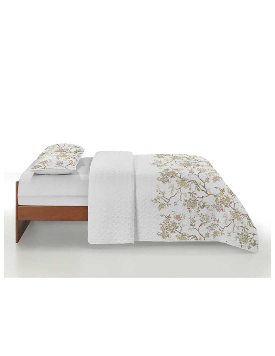 Colcha bouti con ligero relleno y un diseño natural muy freco en tonos beige. Es ideal para el entretiempo y verano.