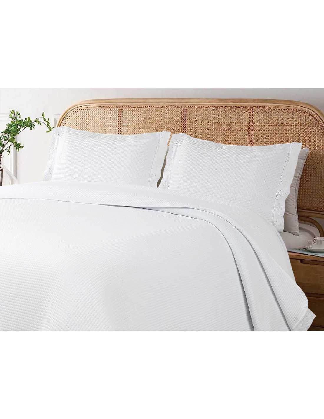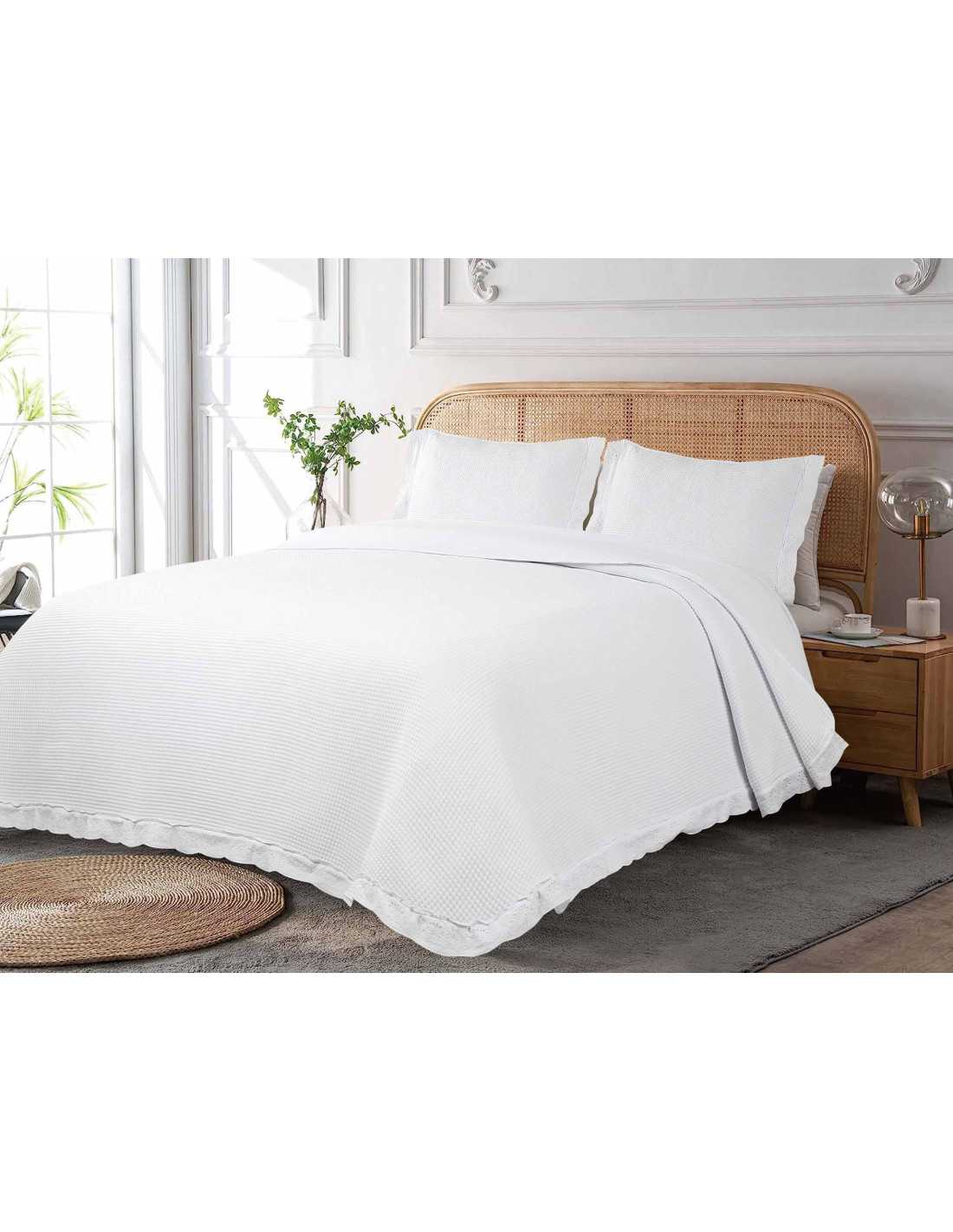 Preciosa y elegante colcha bordada blanca con volante, con relleno ligero de algodón. Elegancia y sencillez para tu dormitorio.