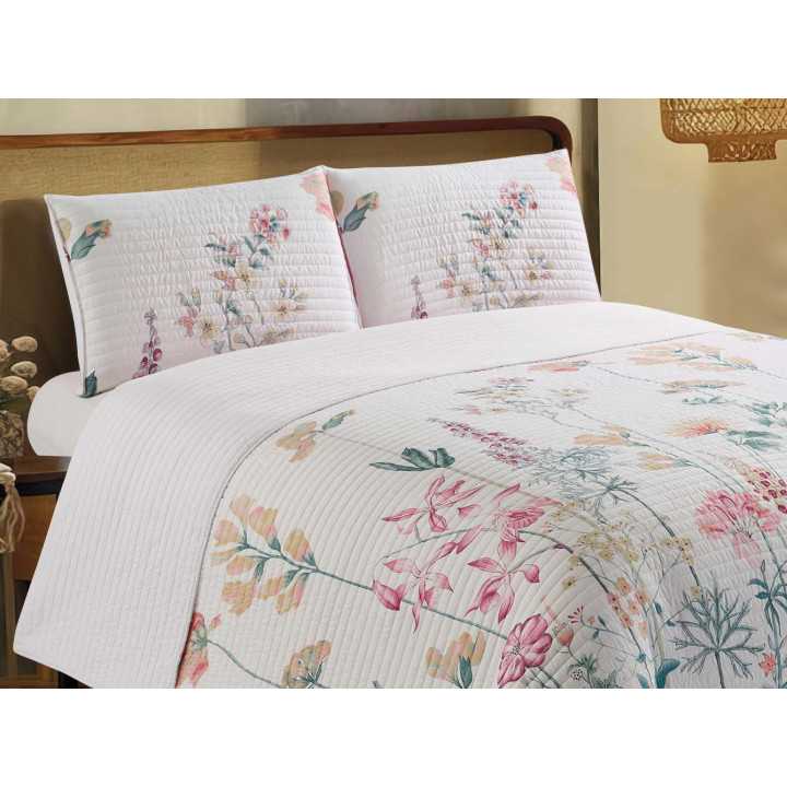 Colcha bouti Calpe con diseño primaveral en varios colores. Un bouti cosido ideal para el entretiempo y verano. Gramaje del relleno 180 gramos.