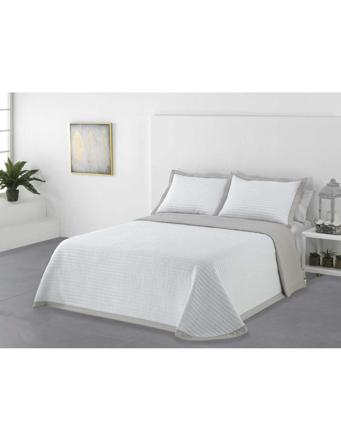 Colcha bouti reversible en tejido bordado, con diseño sencillo y elegante para primavera y verano. Gramaje del relleno 150 gramos.