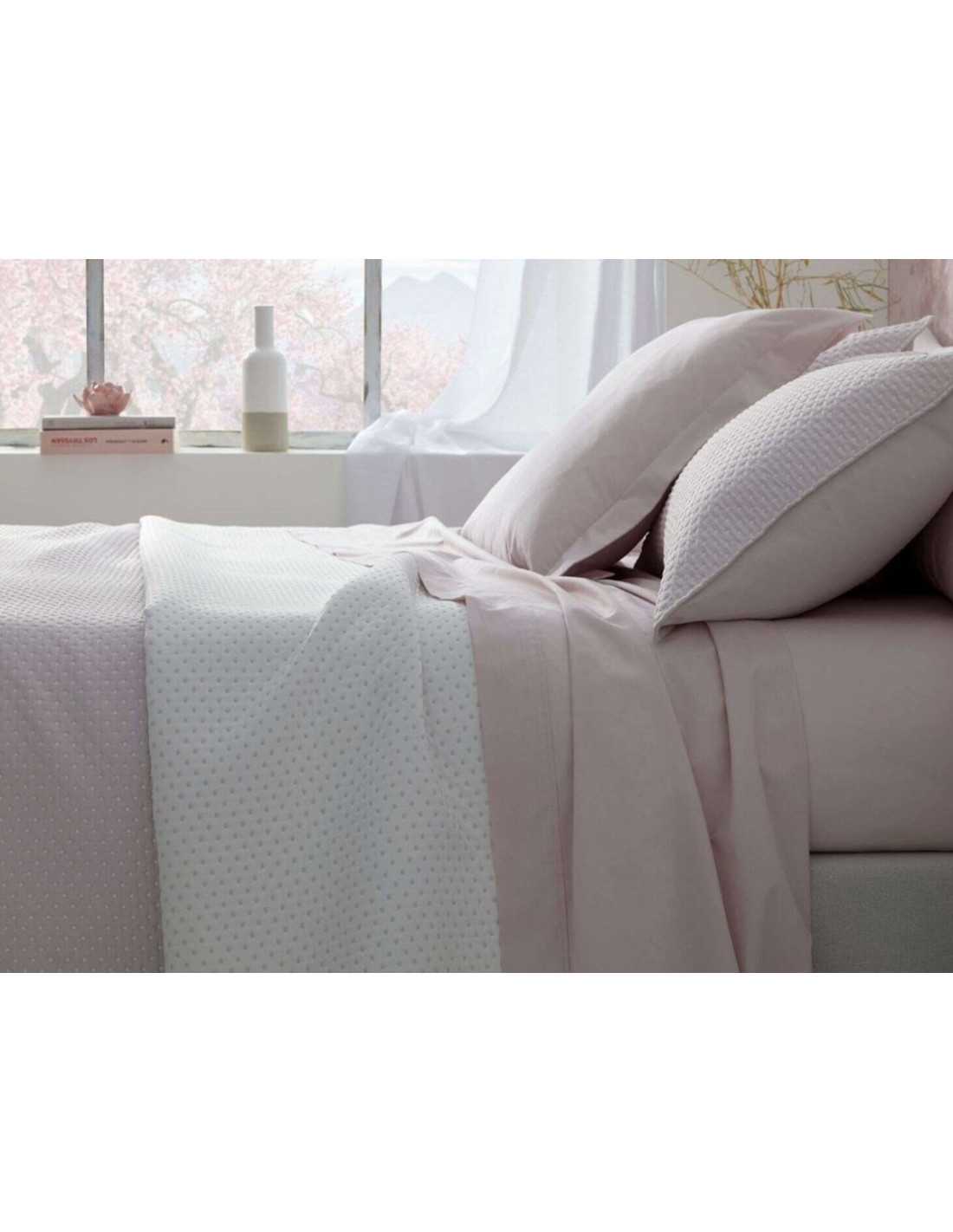 La colcha Menorca de Burrito Blanco es una colcha reversible con elegante diseño geométrico de pequeños topitos creando un relieve muy decorativo. Esta especialmente indicada para el entretiempo y verano.