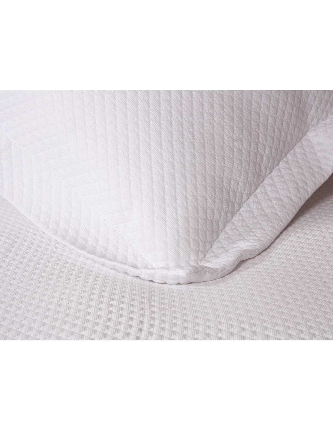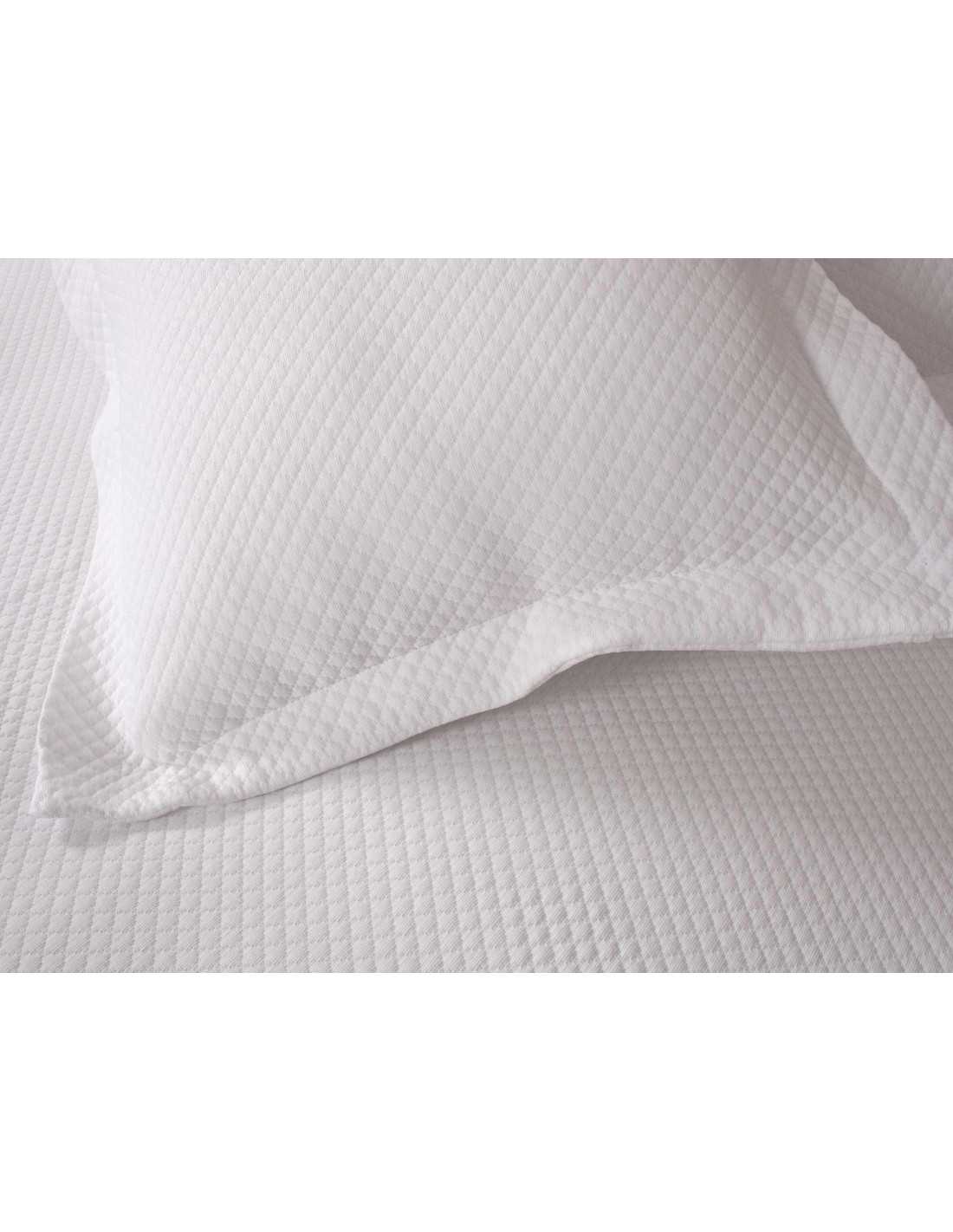 Funda de cojín Sonia, acabado con estampado piqué en relieve al color del tejido, ligero y de una excelente calidad. Te lo presentamos en color blanco, pensados para acompañar a nuestra elegante colcha Sonia o puedes mezclarlos con otros cojines lisos para crear tu propia decoración. Fácil lavado y planchado.