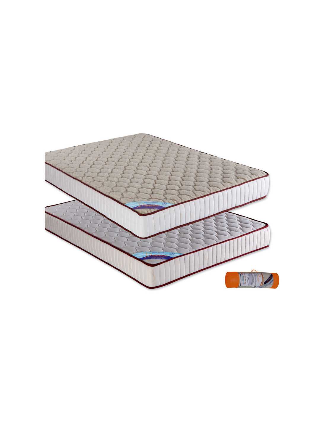 Colchón fabricado en bloque de eliocel HR de estructura celular abierta, el exterior con 2 tejidos uno strech para el verano y otro pura lana virgen para el invierno.