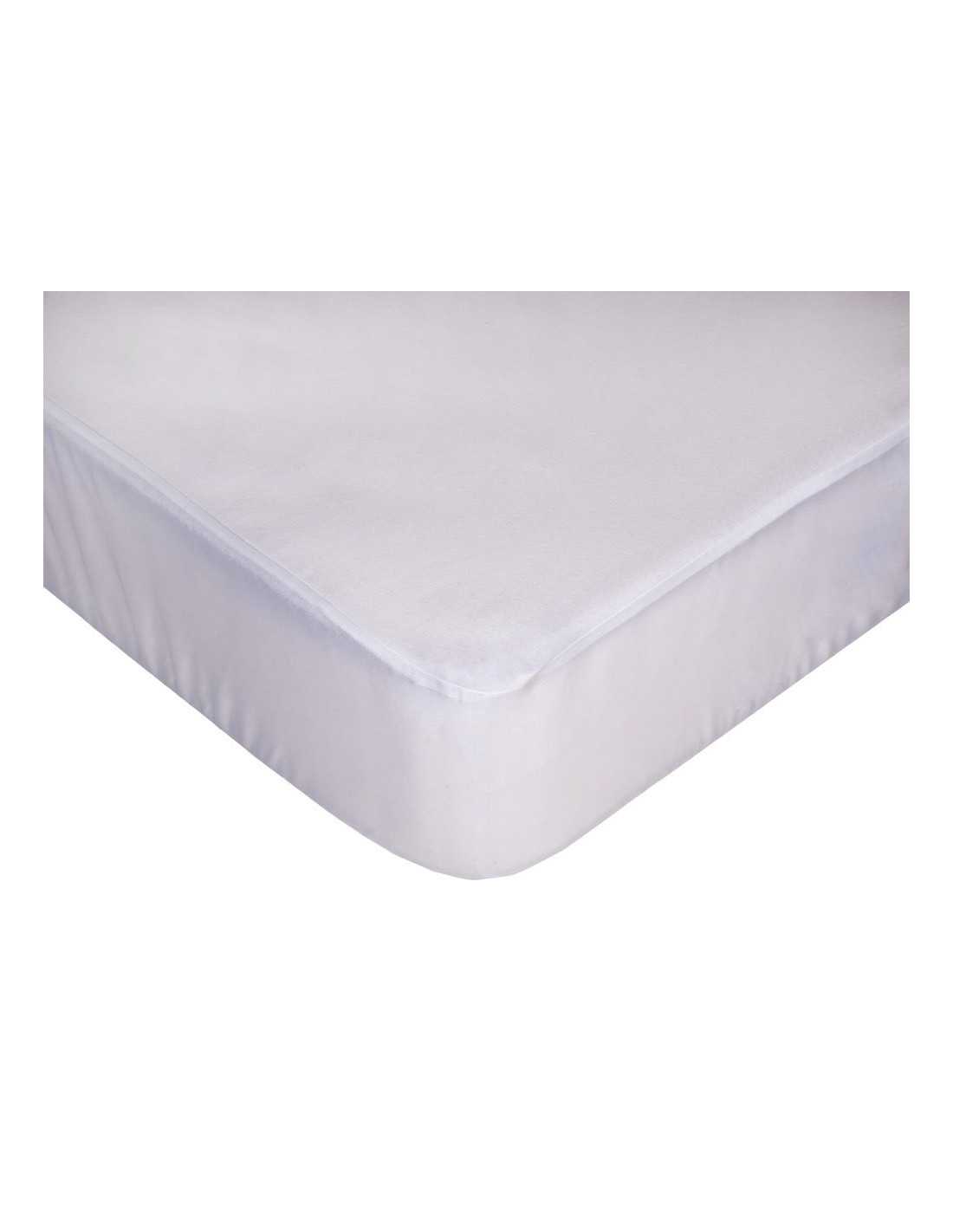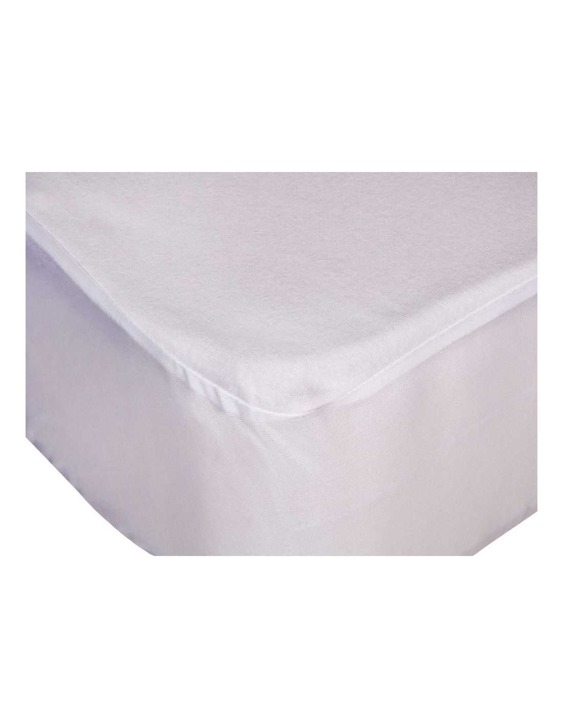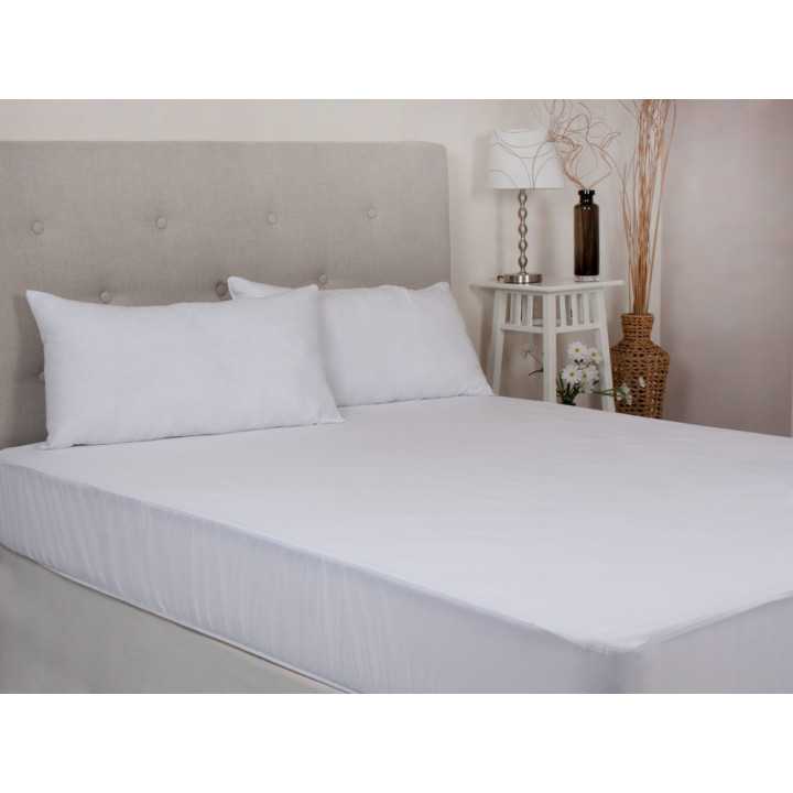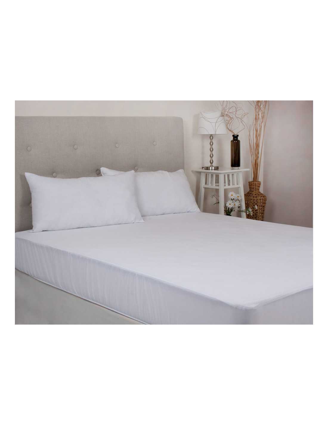 Sábana bajera ajustable confeccionada en 100% algodón, transpirable e impermeable.