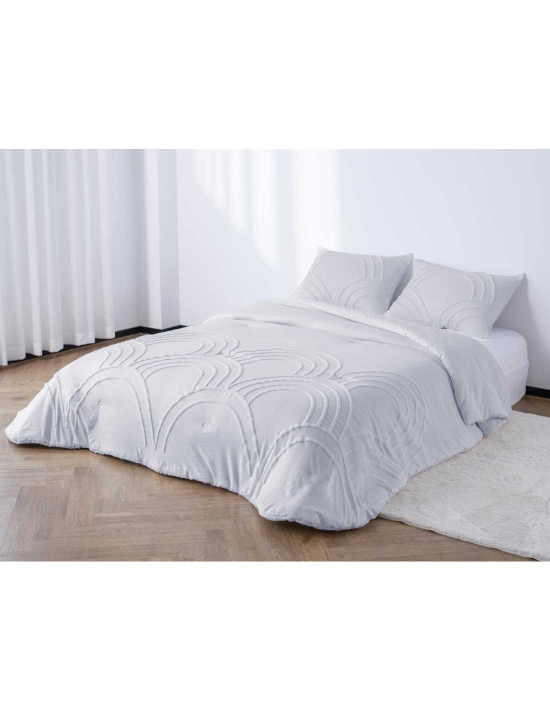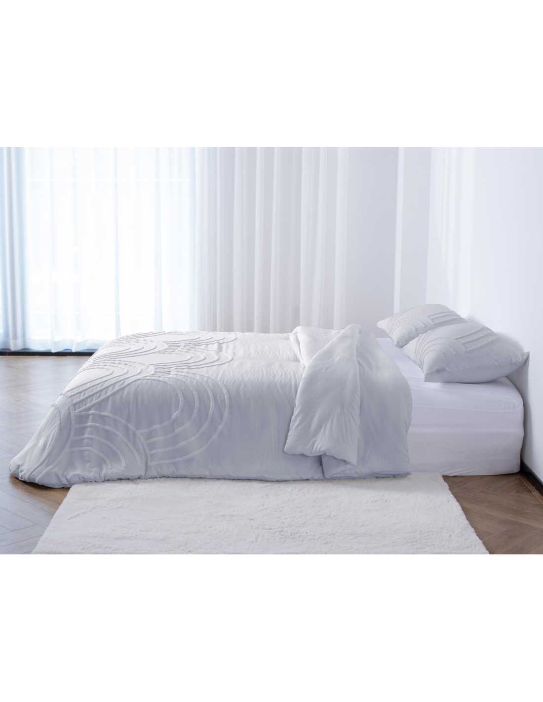 Sadel es un edredón sencillo y muy elegante en color blanco con un bordado en ondas que decorará tu dormitorio este otoño invierno.