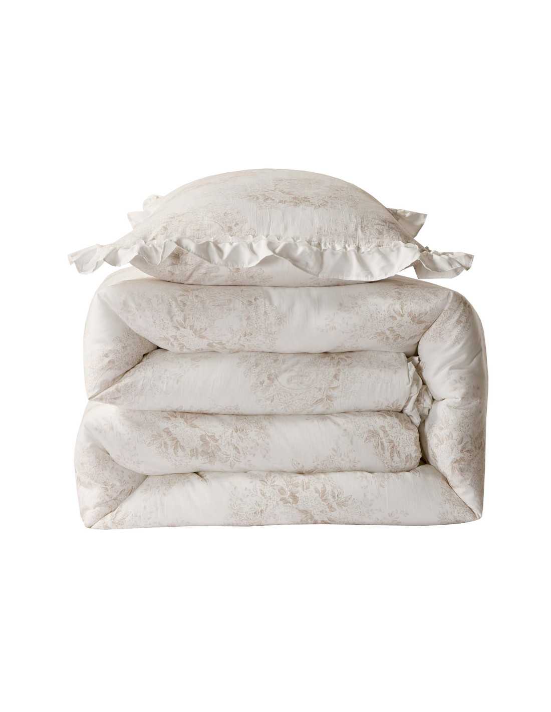 Conjunto de edredón de tejido extra suave con estampado con diseño de toile de jouy, fundas de cojín a juego de 50X70 y doble volante. Un edredón muy decorativo para esta temporada.