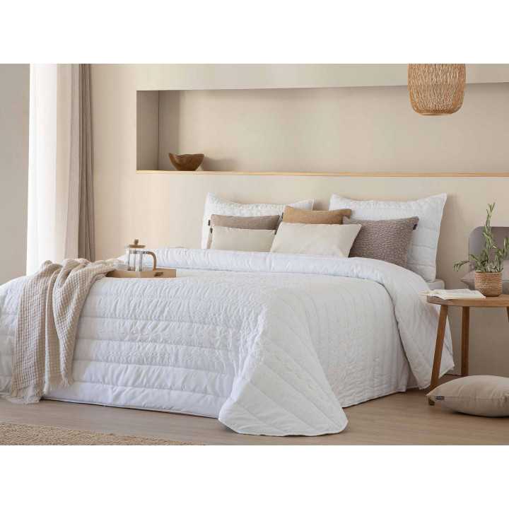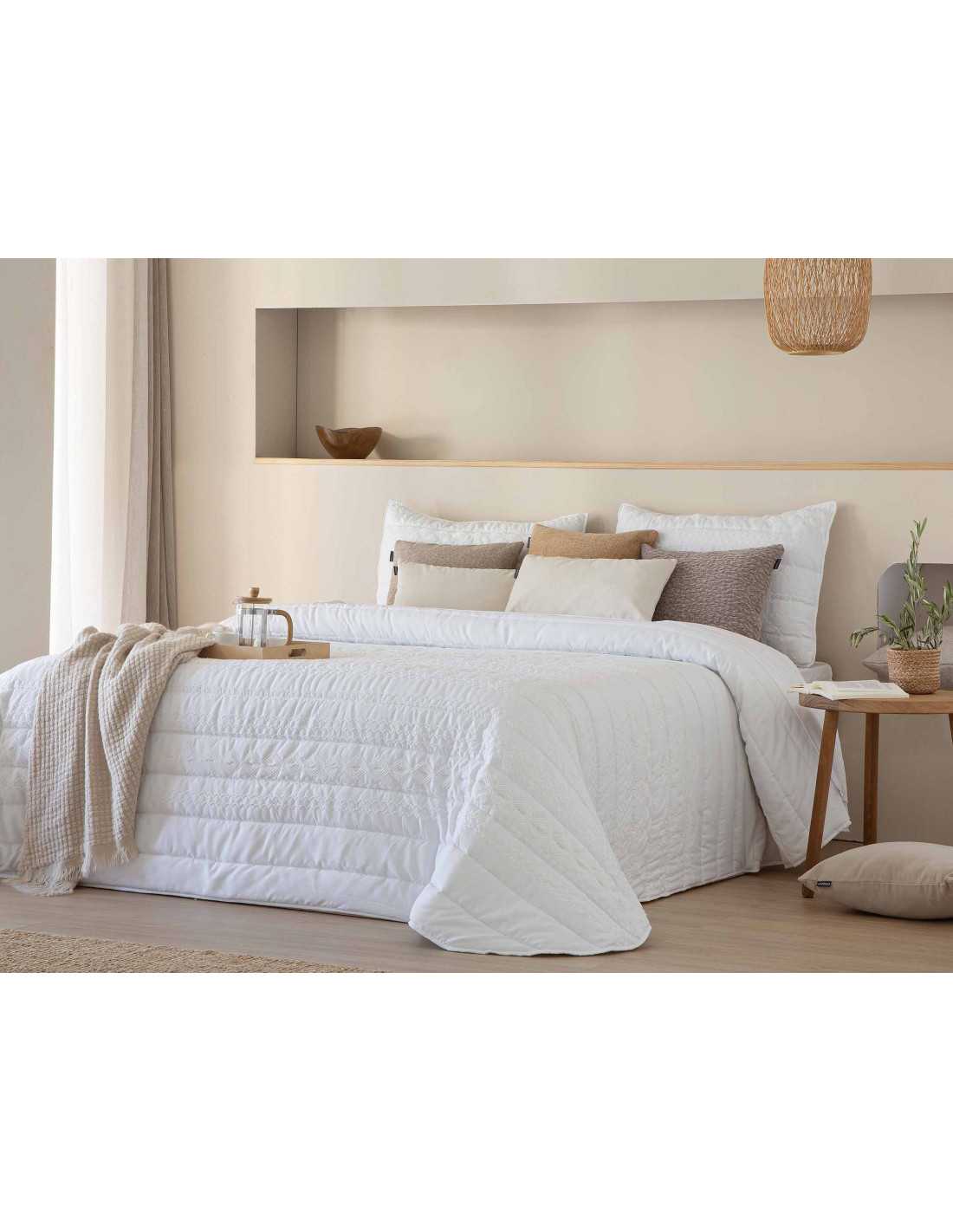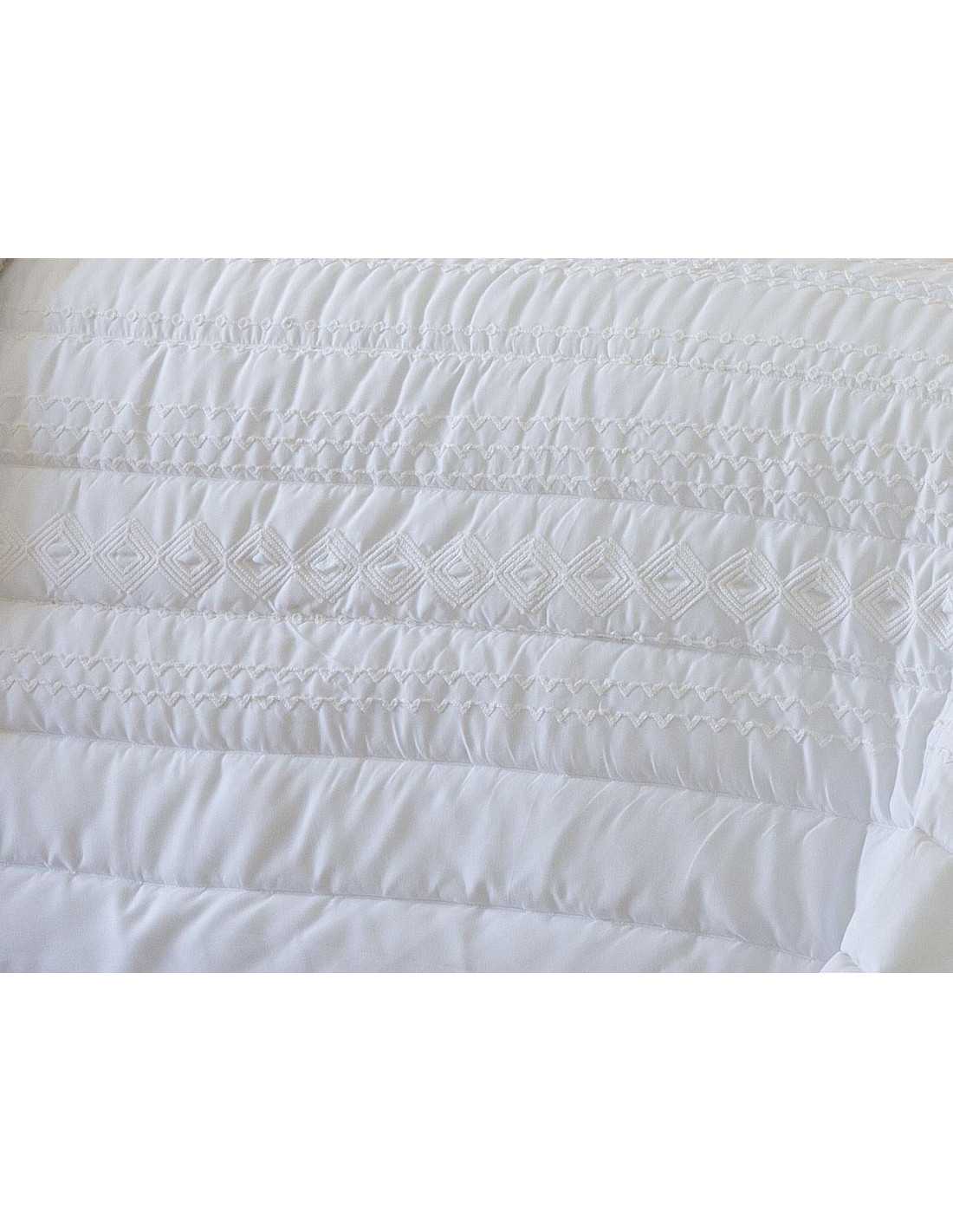 Precioso y elegante edredón bordado de Antilo en color blanco, con relleno de 200 gramos. Indicado para dar calidez en invierno con ligereza.