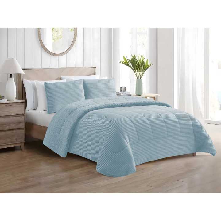 Edredón de tejido franela con reverso de borreguito, con un gramaje total de 580 gramos. Un edredón conforter con una gran capacidad calorífica.