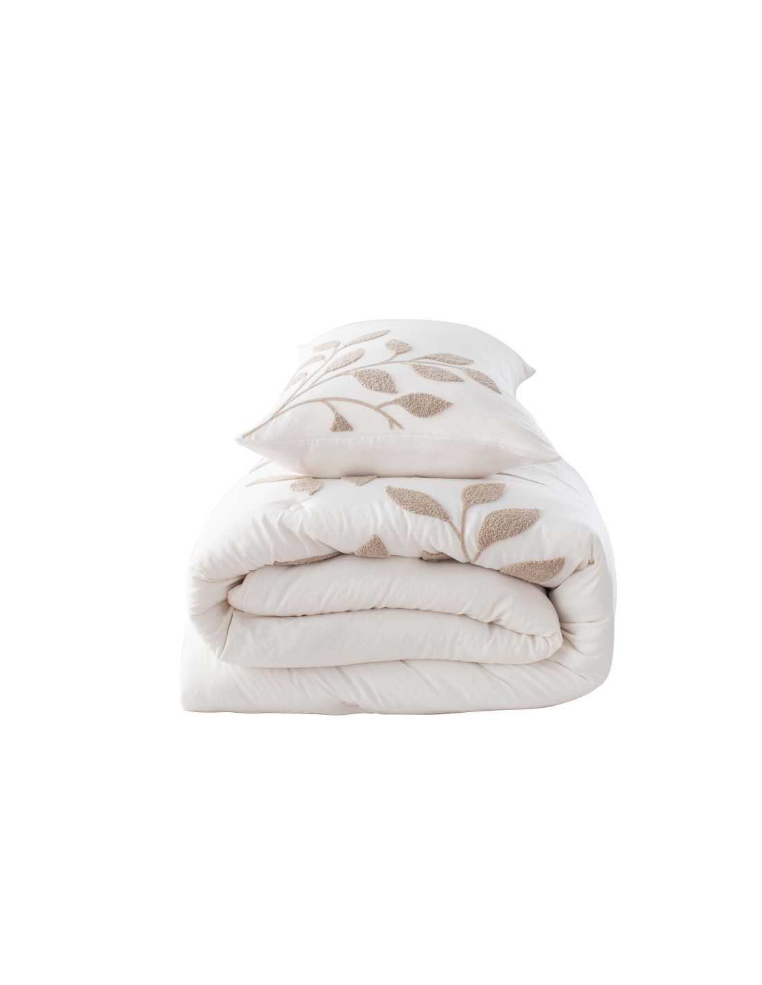 Conjunto de edredón de otoño e invierno con ramas bordadas en relieve y fundas de cojín a juego de 50X70. Un edredón elegante y muy decorativo ideal para esta temporada.