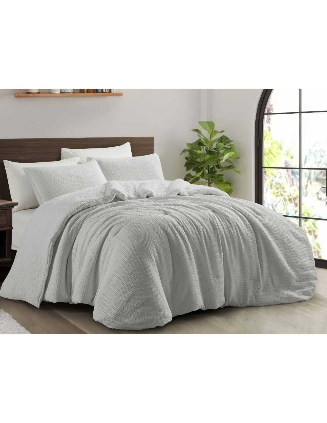 Elegante y decorativo edredón de nido de abeja y reverso de borreguito. Un edredón sencillo y de gran capacidad calorífica, perfecto para descansar plácidamente en invierno.