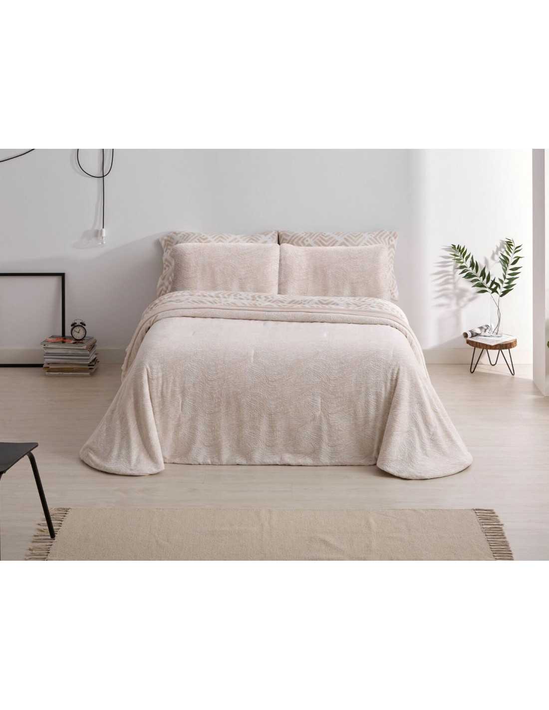 Edredón elegante y sofisticado de Burrito Blanco con pelo corto y reverso de borreguito en tonos crudos. Un edredón de gran poder calorífico.