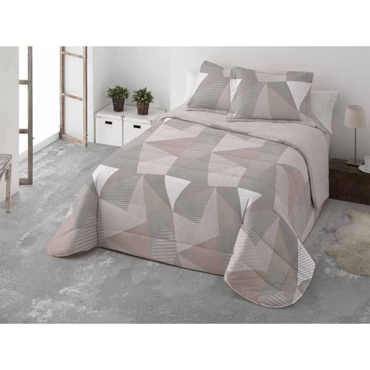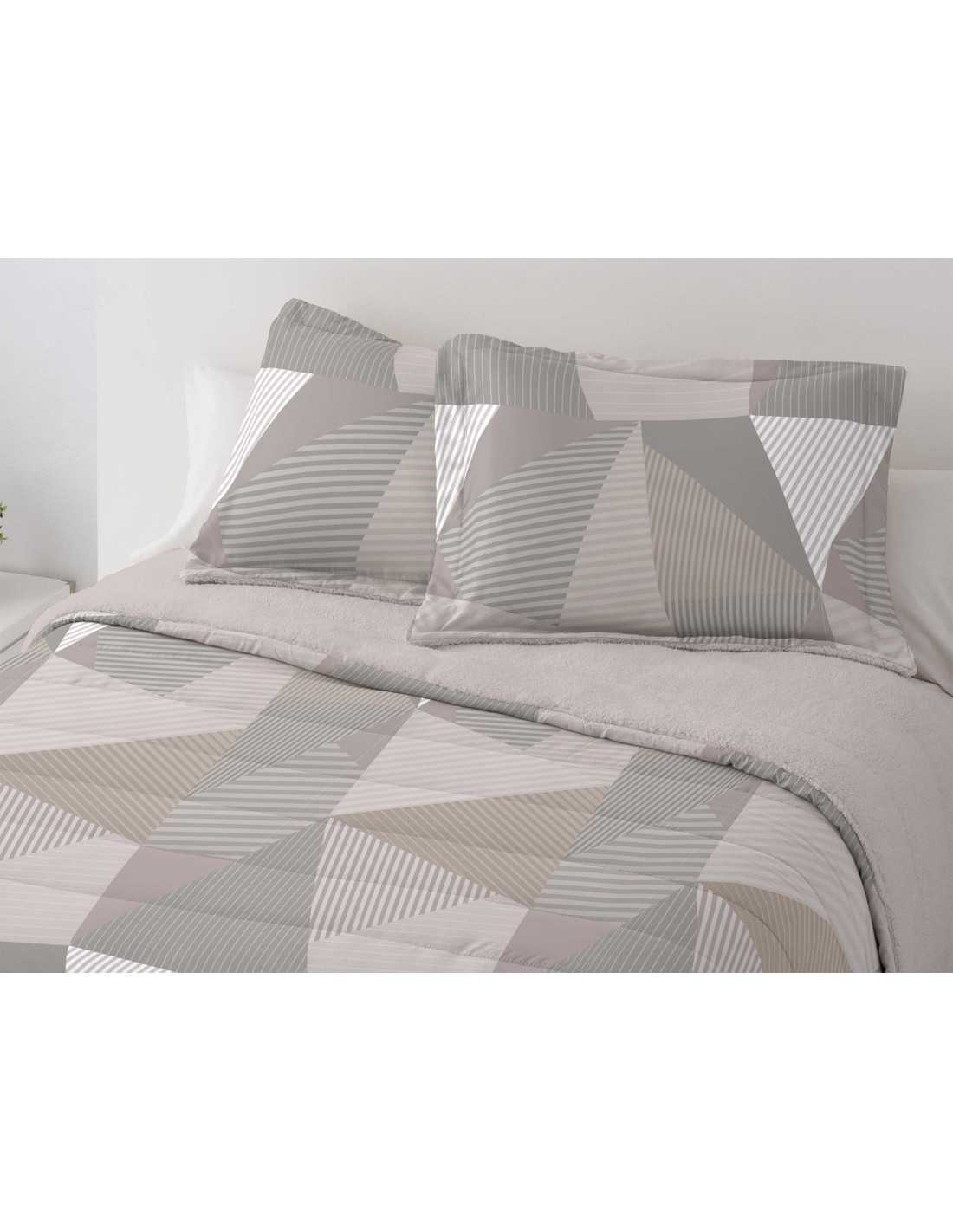 Edredón de sedalina y borreguito en tono beig y gris con bonito estampado geométrico. Gramaje total 620 gramos.